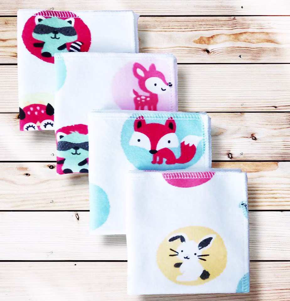4 mouchoirs en flanelle de coton Bio lavables et réutilisables pour enfant – ANIMAUX DE LA FORÊT (22 x 22 cm) mouchoir alternatif et durable – hanckies