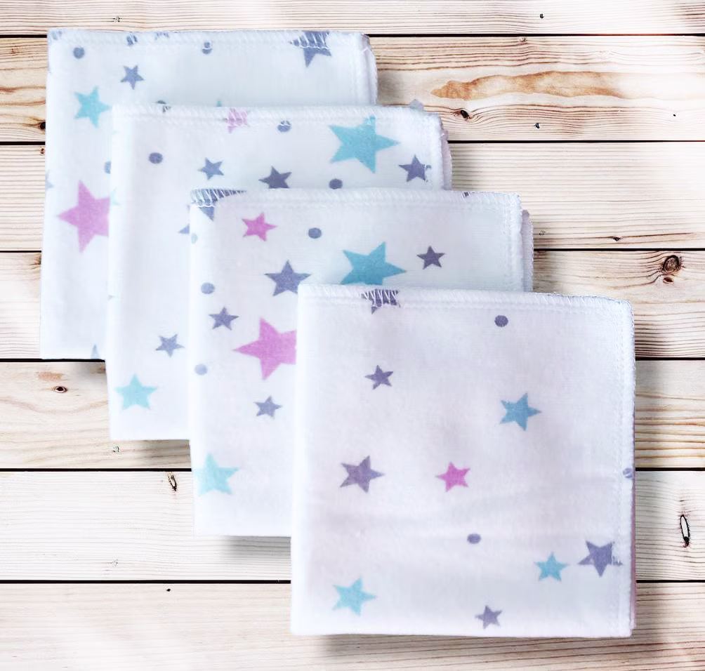 4 mouchoirs en flanelle de coton Bio lavables et réutilisables pour enfant – ETOILES (22 x 22 cm) mouchoir alternatif et durable – hanckies
