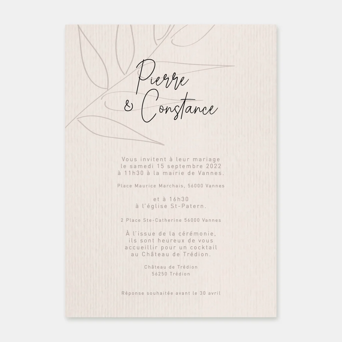 Carton invitation de mariage esquisse feuillage