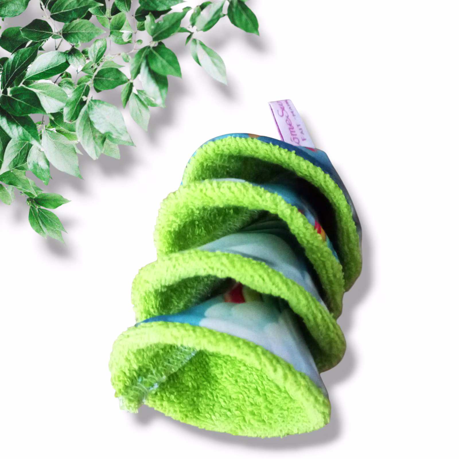 MATIERES : Extérieur : 100% coton imprimé Oeko-Tex / Intérieur : 100% éponge absorbante Oeko-Tex