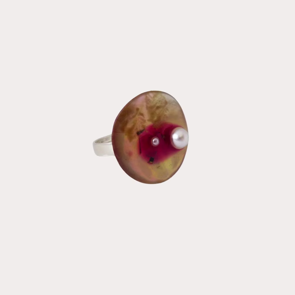 Cette bague nous est offerte par le recyclage d’un ancien bouton.