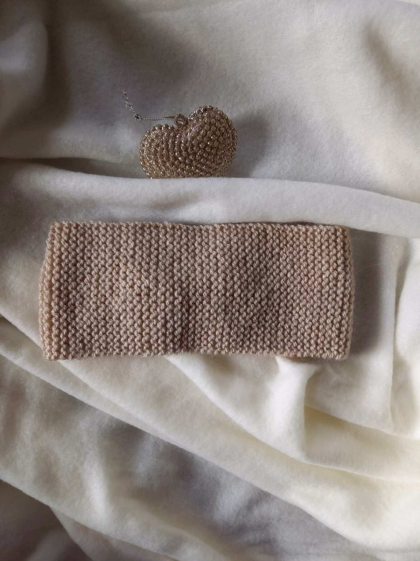 Bandeau tricoté à la main avec de la layette Bergere de France acrylique. Couleur rose-taupe. Tour de tête env. 42cm – largeur env.8,5 cm.Â