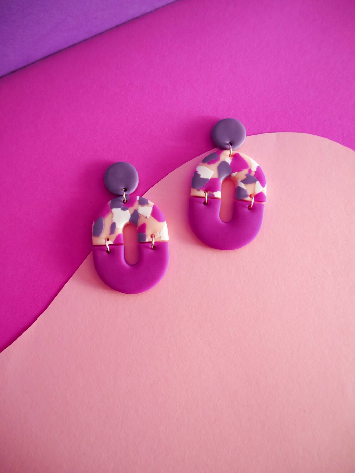 Fabriquées à la main à partir de pâte polymère, ces boucles d’oreilles modernes sont sculptées, poncées, polies et assemblées par mes soins. Il est possible qu’il y ait une légère variation de taille, de teinte et de petites imperfections, mais c’est là tout le charme des créations artisanales.