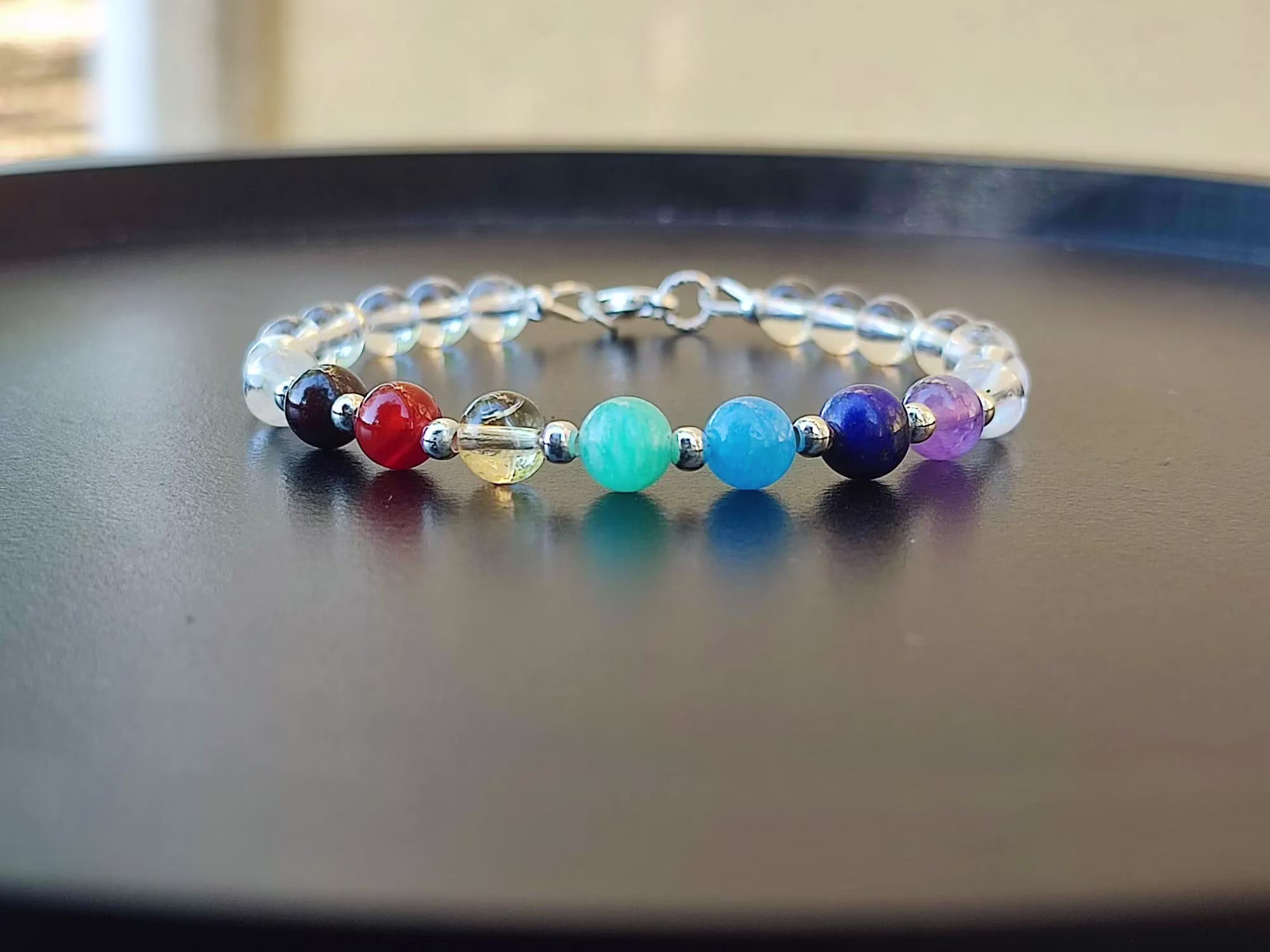Ce bracelet coloré et lumineux est un bijou énergétique unique, conçu pour réaligner les 7 chakras. Les pierres naturelles sélectionnées diffusent une vibration positive qui favorise la sérénité, la vitalité et l’harmonie intérieure.