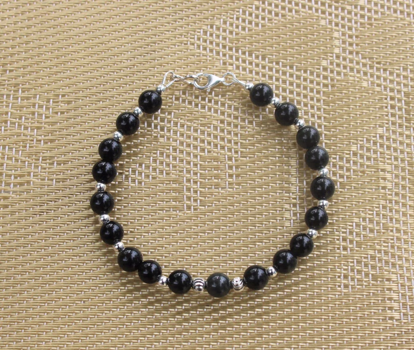 Bracelet raffiné en obsidienne œil céleste véritable ( appelée aussi obsidienne arc en ciel), pierre aux reflets chatoyants verts et violets selon la lumière. Les perles naturelles de 6 mm sont montées avec des apprêts en argent 925 pour un bijou durable, élégant et intemporel.