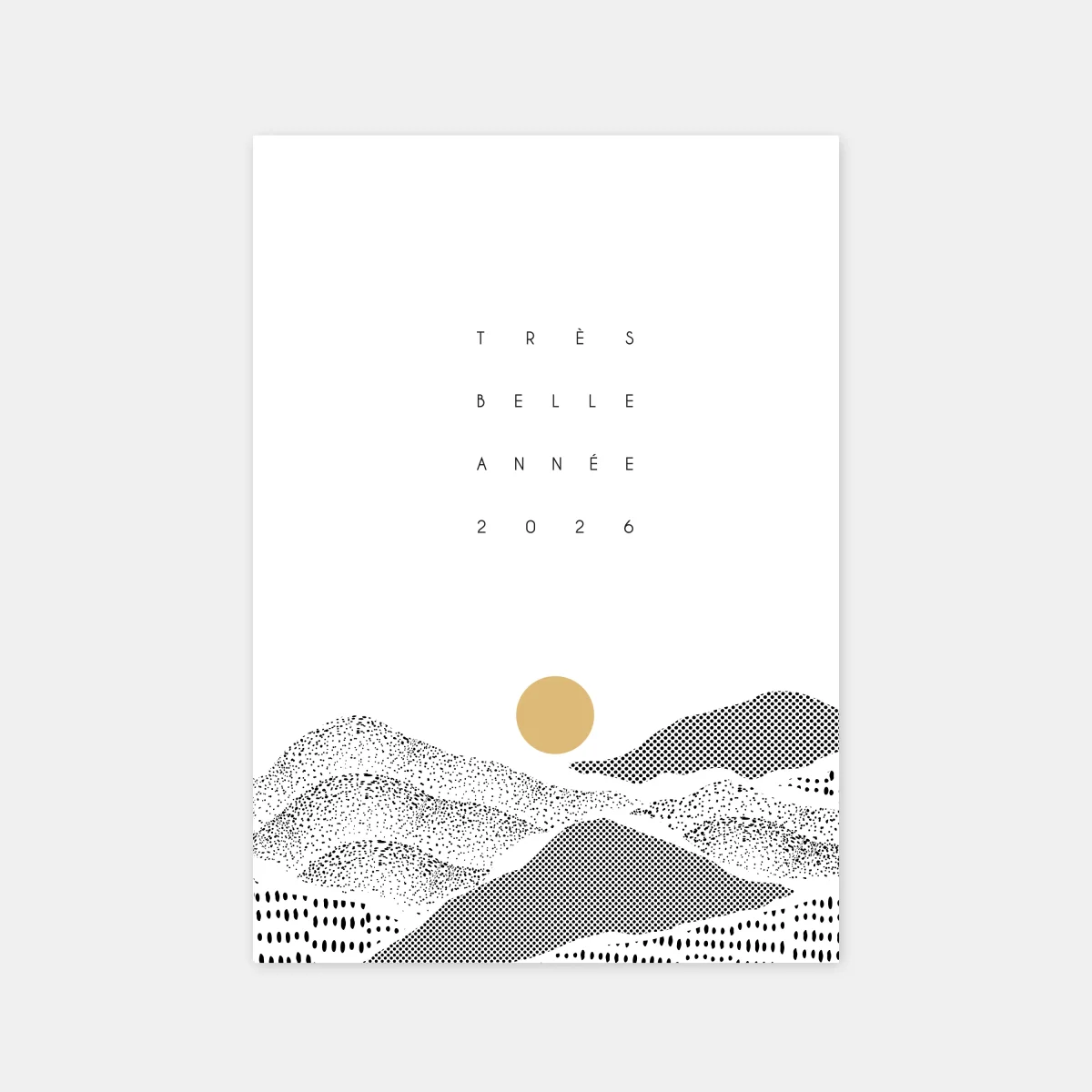 Cette carte de voeux a été imaginée par notre équipe créative. Vous pouvez personnaliser l’intérieur de cette carte en y ajoutant votre image ou photo, le logo de votre entreprise, un texte ou bien le laisser vide pour écrire votre message à la main. Toutes les cartes de voeux de notre collection sont imprimées dans notre atelier parisien sur le plus beaux papiers de création de notre collection tous certifiés FSC®.