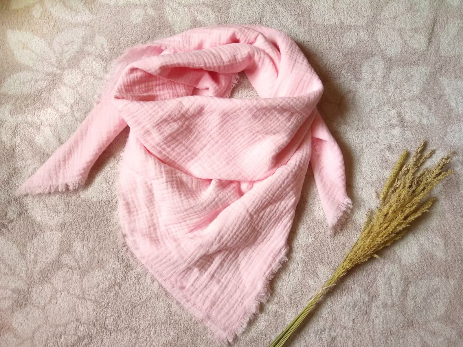 Ce joli chèche ou foulard à frange en double gaze de coton bleu ciel vous protègera des malicieuses brises fraiches venues chatouiller