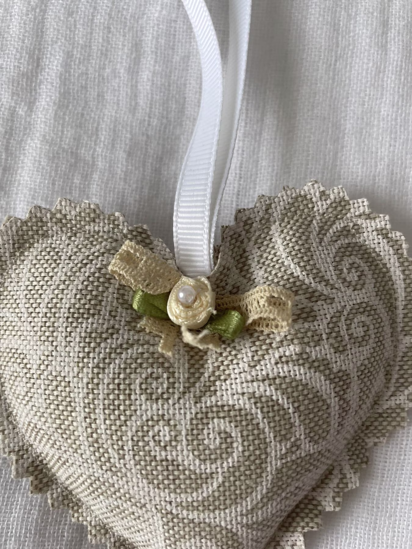 PETIT CÅ’UR EN TISSU dans les tons Beiges/Blancs