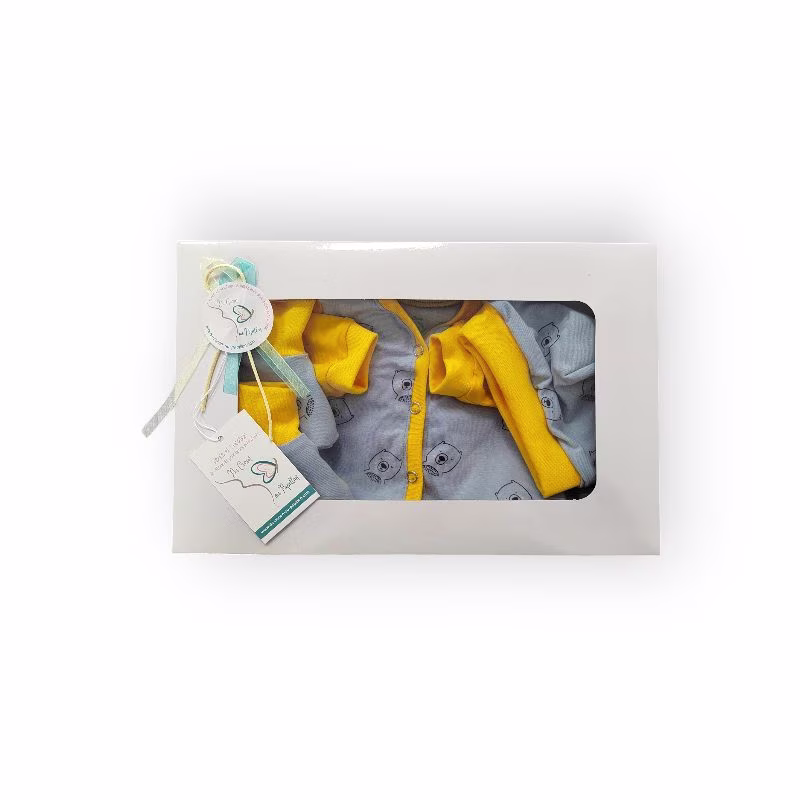 Besoin d’un joli cadeau de naissance? Ce Kit de naissance composée d’un pyjama, un bonnet et des chaussons, emballé dans une joli boite est idéal pour l’offrir!