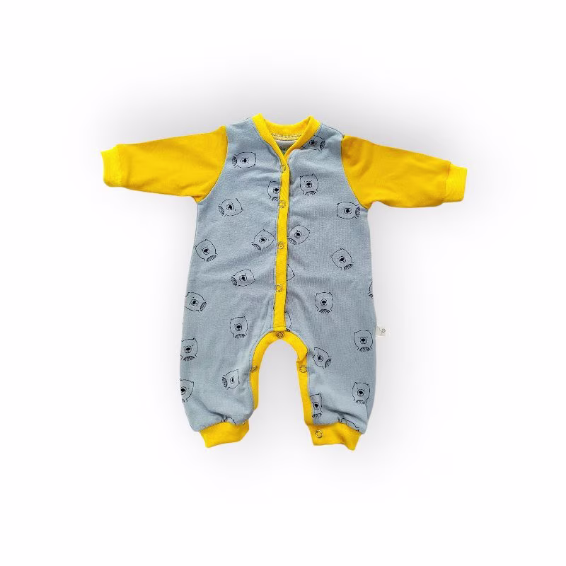 Le pyjama, en joli tissu de qualité GOTS et plein de couleurs, est facile à enfiler et pratique en usage avec l’ouverture centrale et à l’entrejambe.