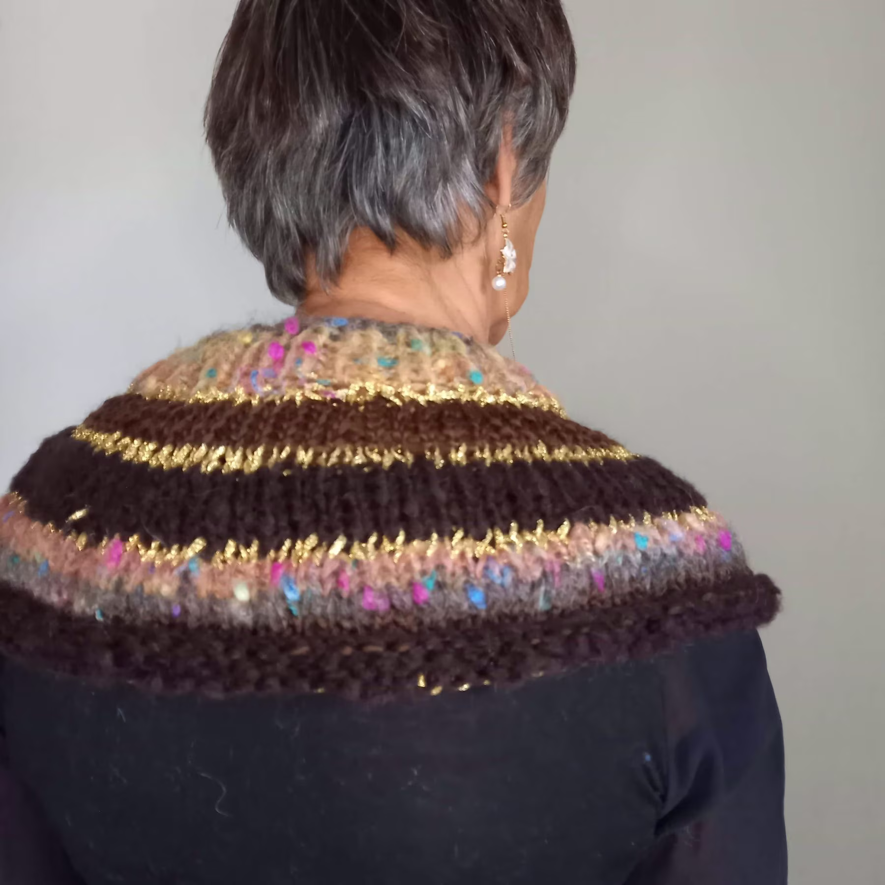 Chauffe épaule pour femme tricoté en laine dans des tons de marron.