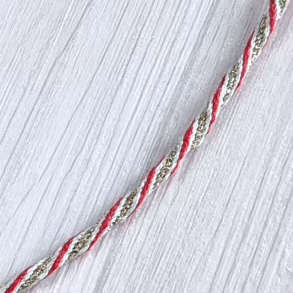 Son tressage délicat, réalisé à la main avec un subtil mélange de coton perlé et de fils métallisés, offre un éclat unique et une solidité remarquable.