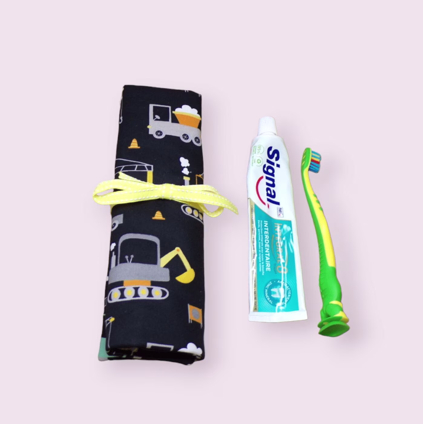 Étui, pochette pour ranger la brosse à dents et le dentifrice, facile à glisser et emporter lors de vos déplacements, pour les vacances, les week-ends ou les séjours chez les grands parents.