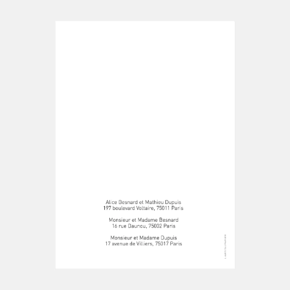 En sélectionnant ce faire-part de mariage Couronne Exotique de notre collection vous optez pour une carte élégante et moderne pour inviter vos amis et votre famille à votre mariage. Les faire-part de notre collection Mariage sont imprimés dans notre atelier parisien sur le plus beaux papiers de notre collection.