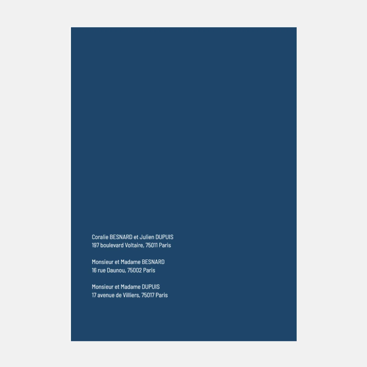 Tous les faire-part de notre collection Mariage sont imprimés en France dans notre atelier parisien sur le plus beaux papiers de notre collection.