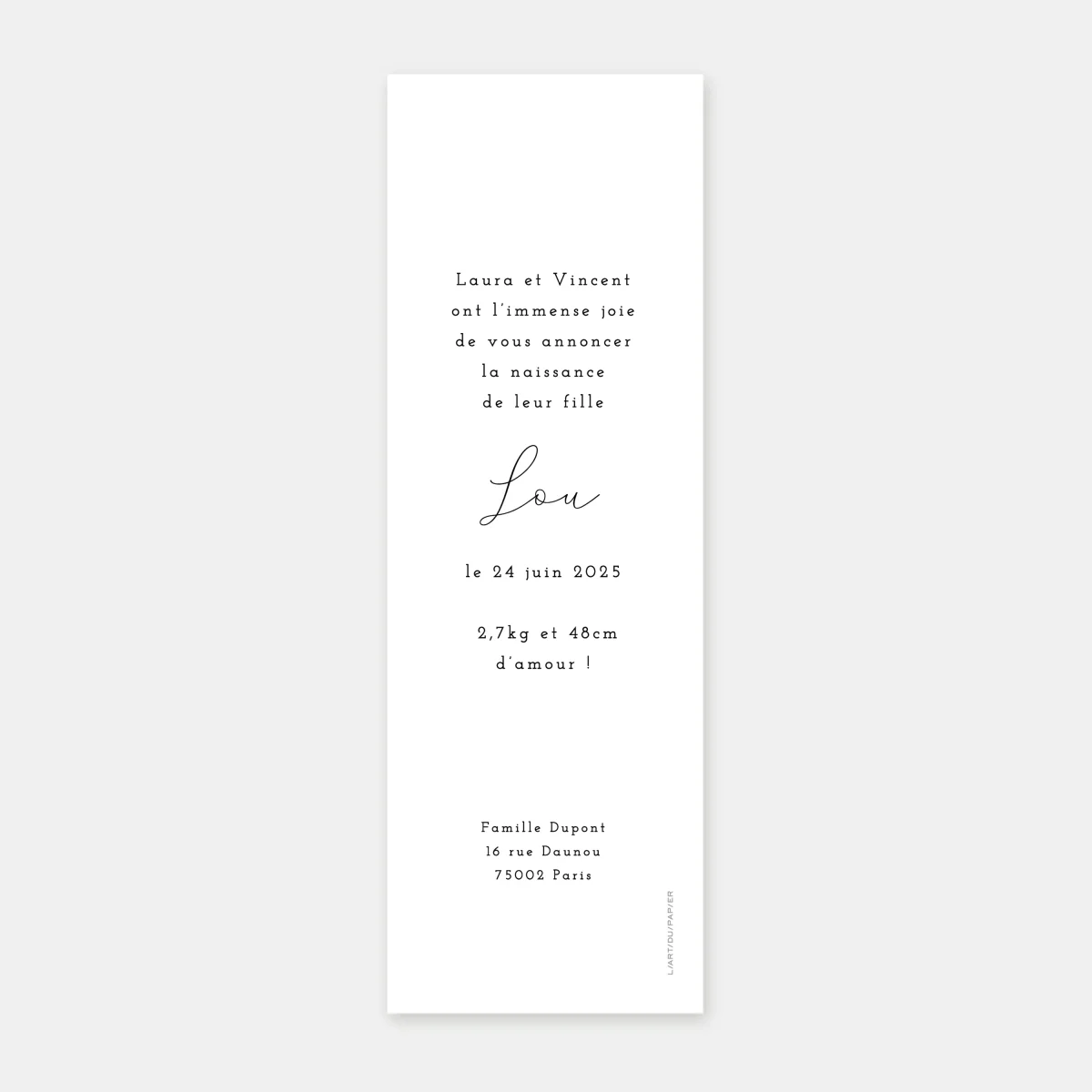 Tous les faire-part de notre collection naissance sont imprimés dans notre atelier parisien sur le plus beaux papiers de création certifiés FSC® de notre collection.