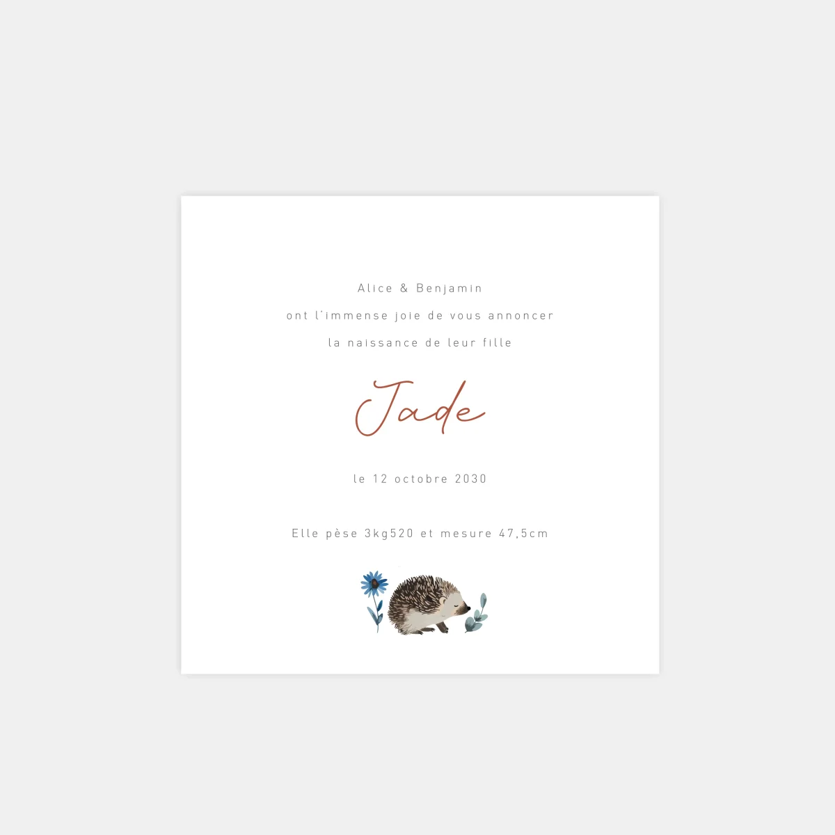 Notre faire-part de naissance famille hérisson est un joli mélange de belles illustrations d’une famille hérisson dessinée à la main, d’une photo de votre enfant et d’une d’une mise en page douce et moderne composée d’une ou plusieurs typographies manuscrite ou plus conventionnelle.