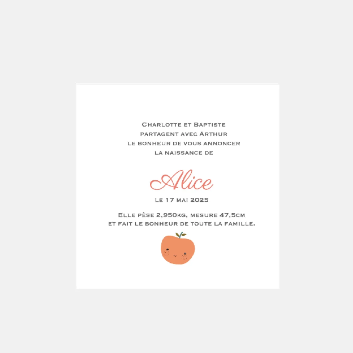 Notre faire-part de naissance Famille Pommes est un joli mélange d’une belle illustration dessinée à la main et d’une mise en page douce et moderne composée d’une ou plusieurs typographies manuscrite ou plus conventionnelle.