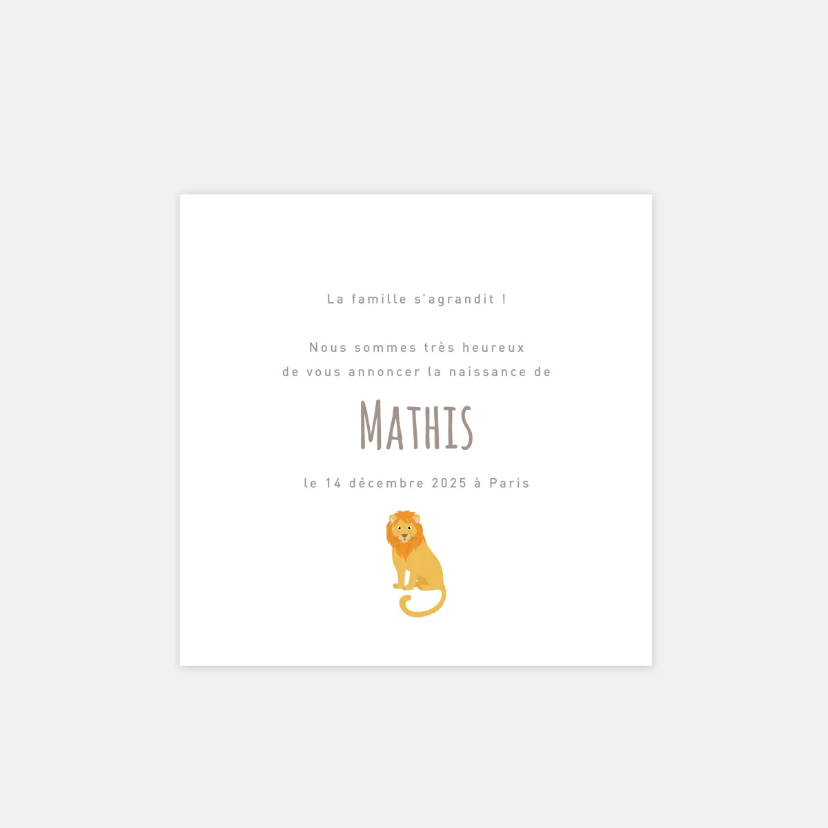 Notre faire-part de naissance jungle lion est un joli mélange d’une belle illustration des animaux de la jungle dessinée à la main et d’une d’une mise en page douce et moderne composée d’une ou plusieurs typographies manuscrite ou plus conventionnelle. Tous les faire-part de notre collection naissance sont imprimés dans notre atelier parisien sur le plus beaux papiers de création certifiés FSC® de notre collection.