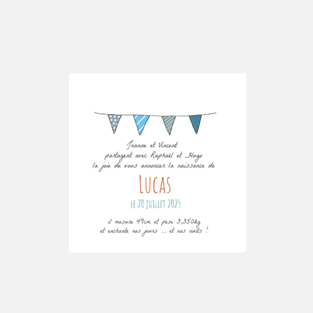 Notre faire-part de naissance Ma famille by Kopines est un délicat mélange d’une illustration contemporaine réalisée à la main, d’une photo de votre enfant et d’une mise en page élégante composée d’une ou plusieurs typographies. Ce faire-part a été imaginé et créé par Céline Charlès, illustratrice et bloggueuse du site Kopines.com passionnée par le monde de l’enfance.