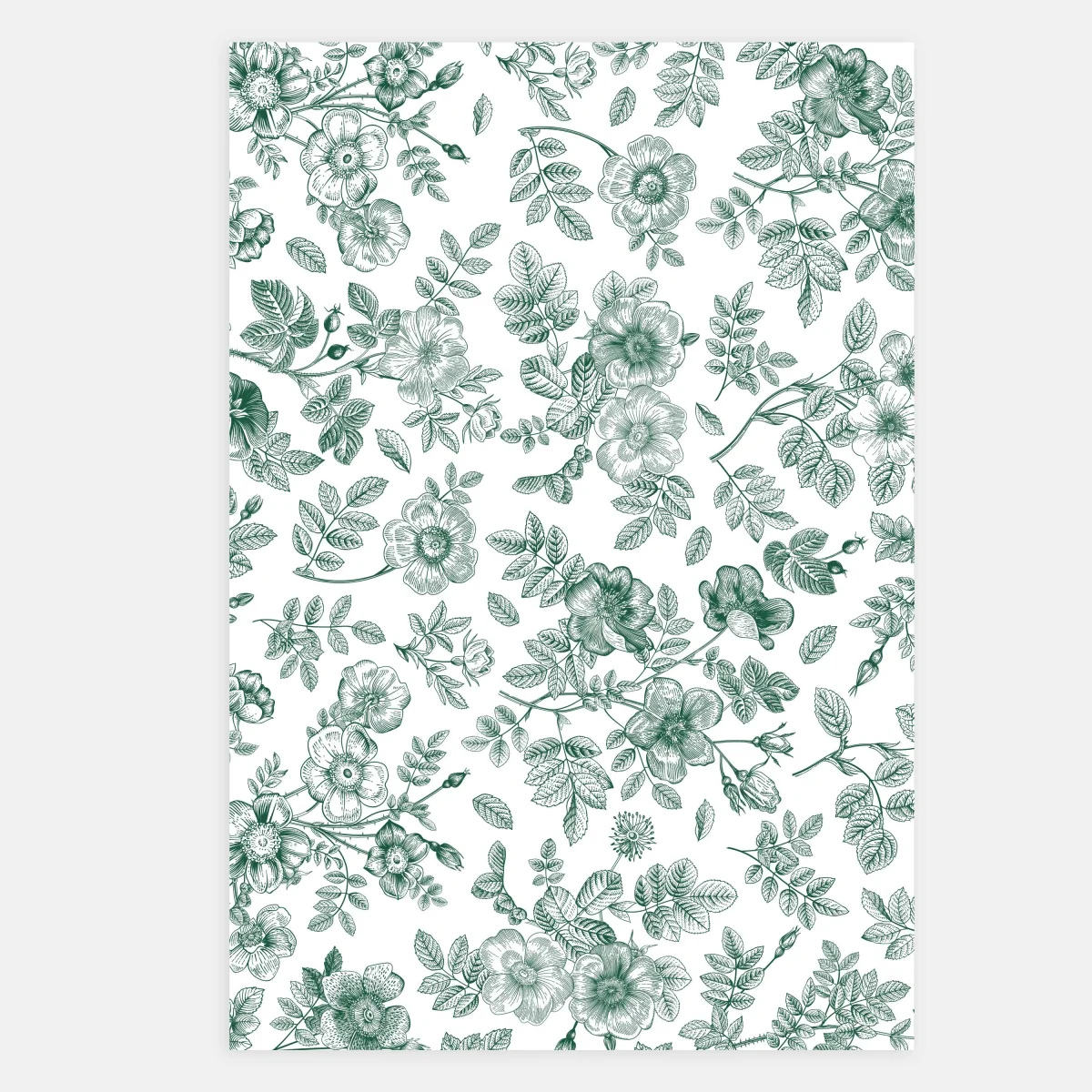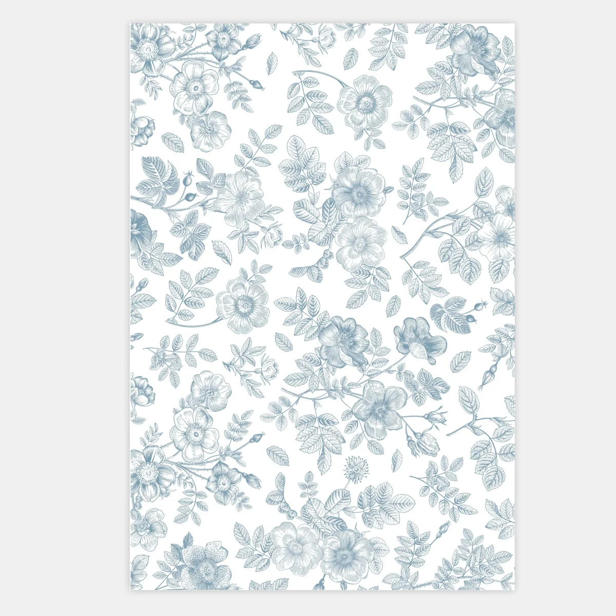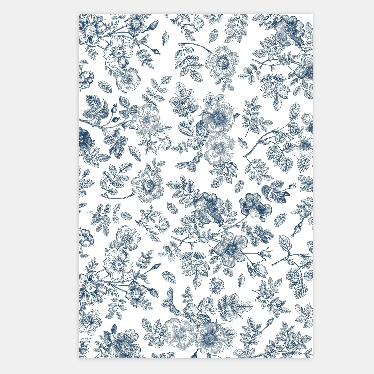 L’illustration est composées de fleurs dessinée à la main reproduisant une toile de Jouy.