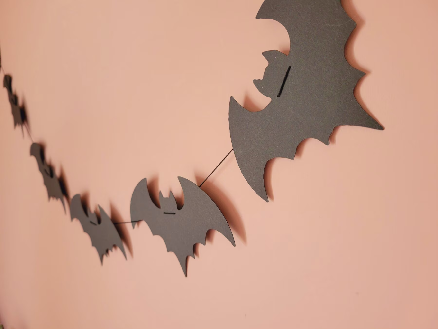 Confectionnée entièrement à la main, cette bannière Halloween présente des silhouettes de chauve-souris noires parfaitement découpées dans du papier de qualité.