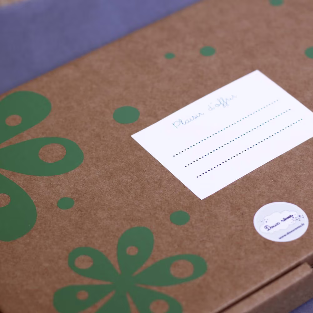 Il vous suffit d’écrire un petit mot ou de signer sur la cadre prévu à cet effet sur le pack et c’est prêt à offrir !