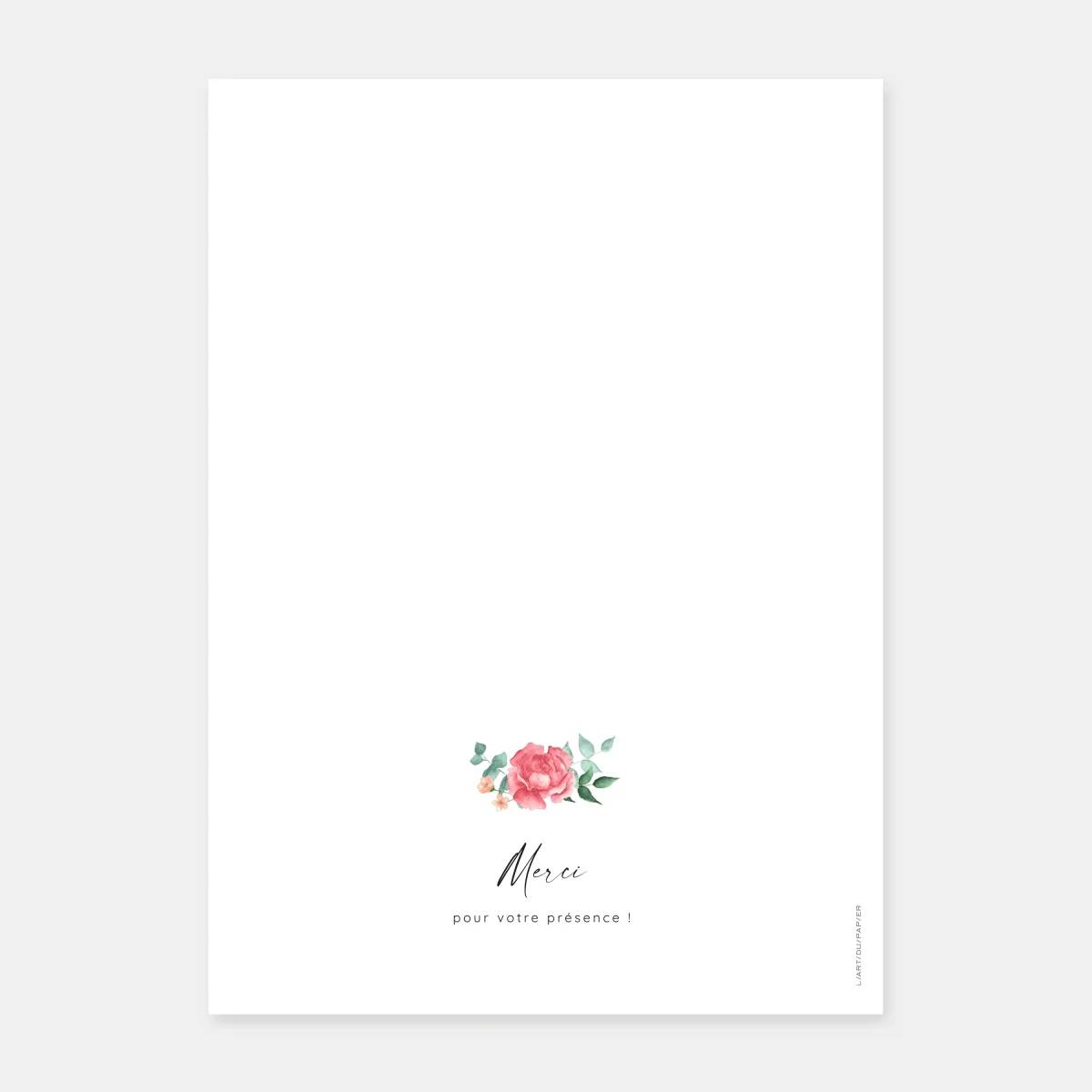 Notre livret de mariage bouquet aquarelle est un joli mélange d’un dessin d’une demi couronne de fleurs dessinées à l’aquarelle et d’une mise en page douce et moderne composée de deux belles typographies, l’une manuscrite et l’autre plus conventionnelle.