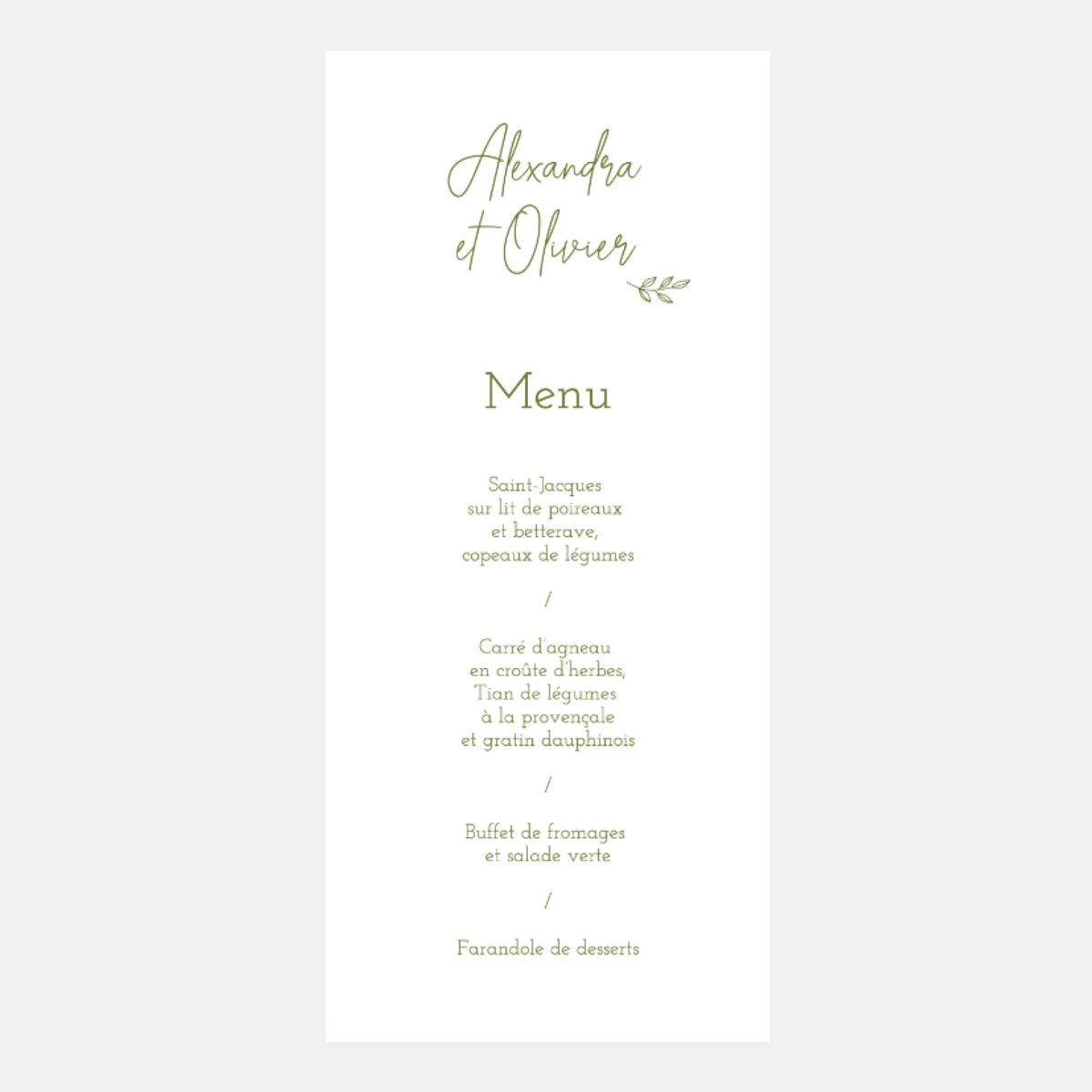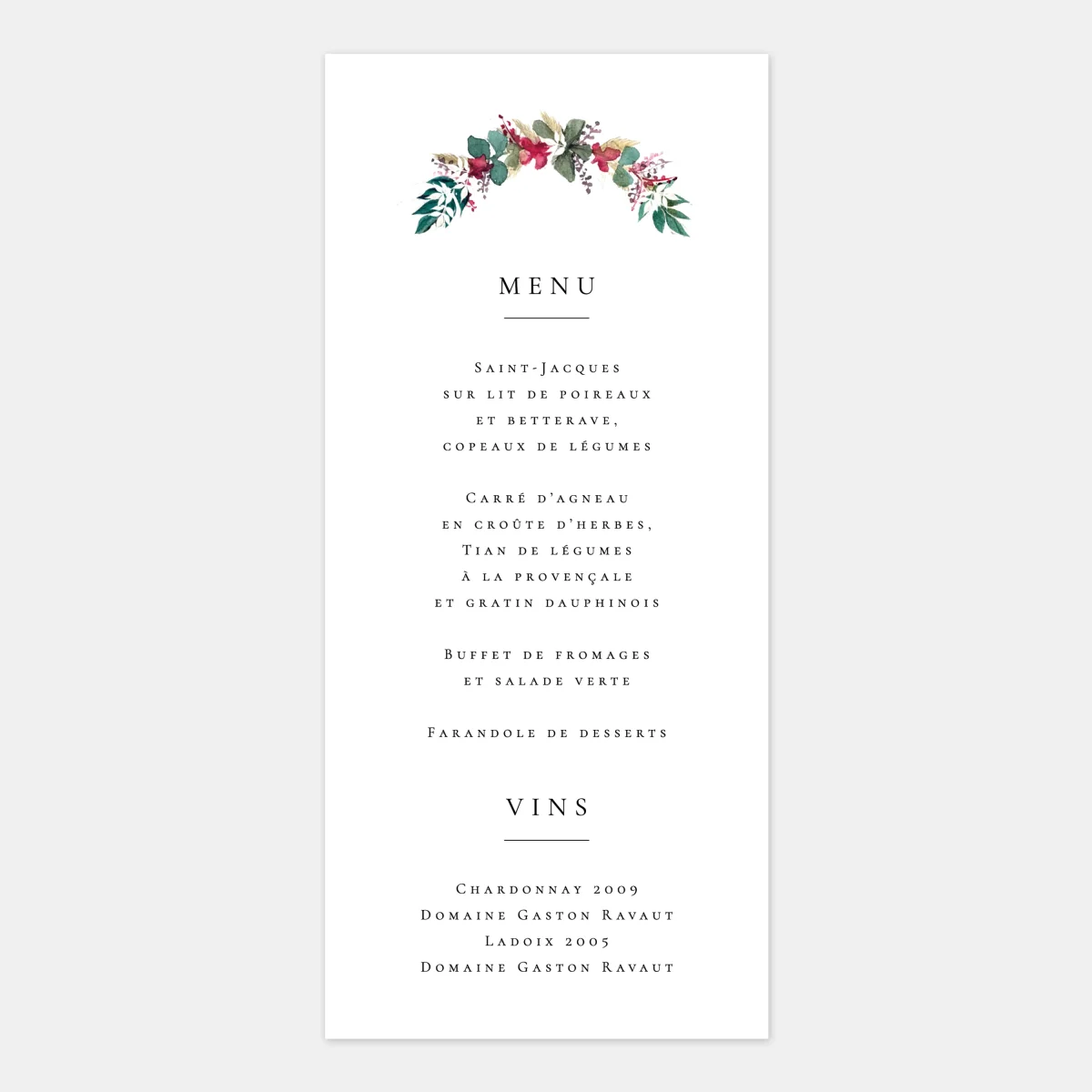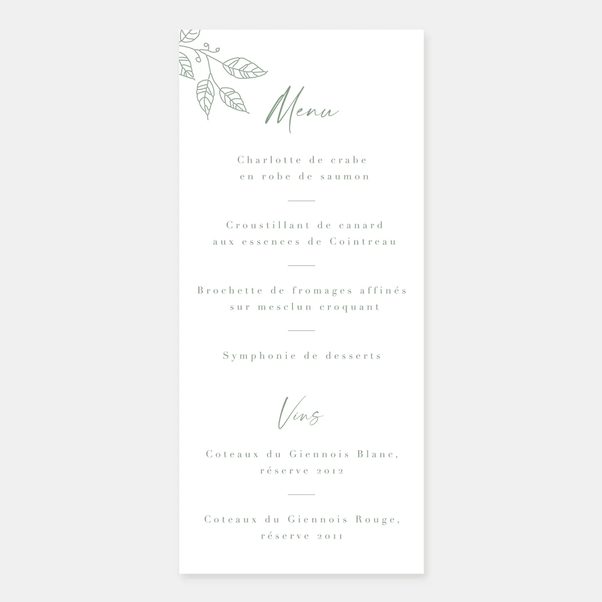 Chaque élément graphique de cette composition est personnalisable dans plusieurs coloris. Tous les menus de notre collection mariage sont imprimés dans notre atelier parisien sur des papiers de création certifiés FSC®.