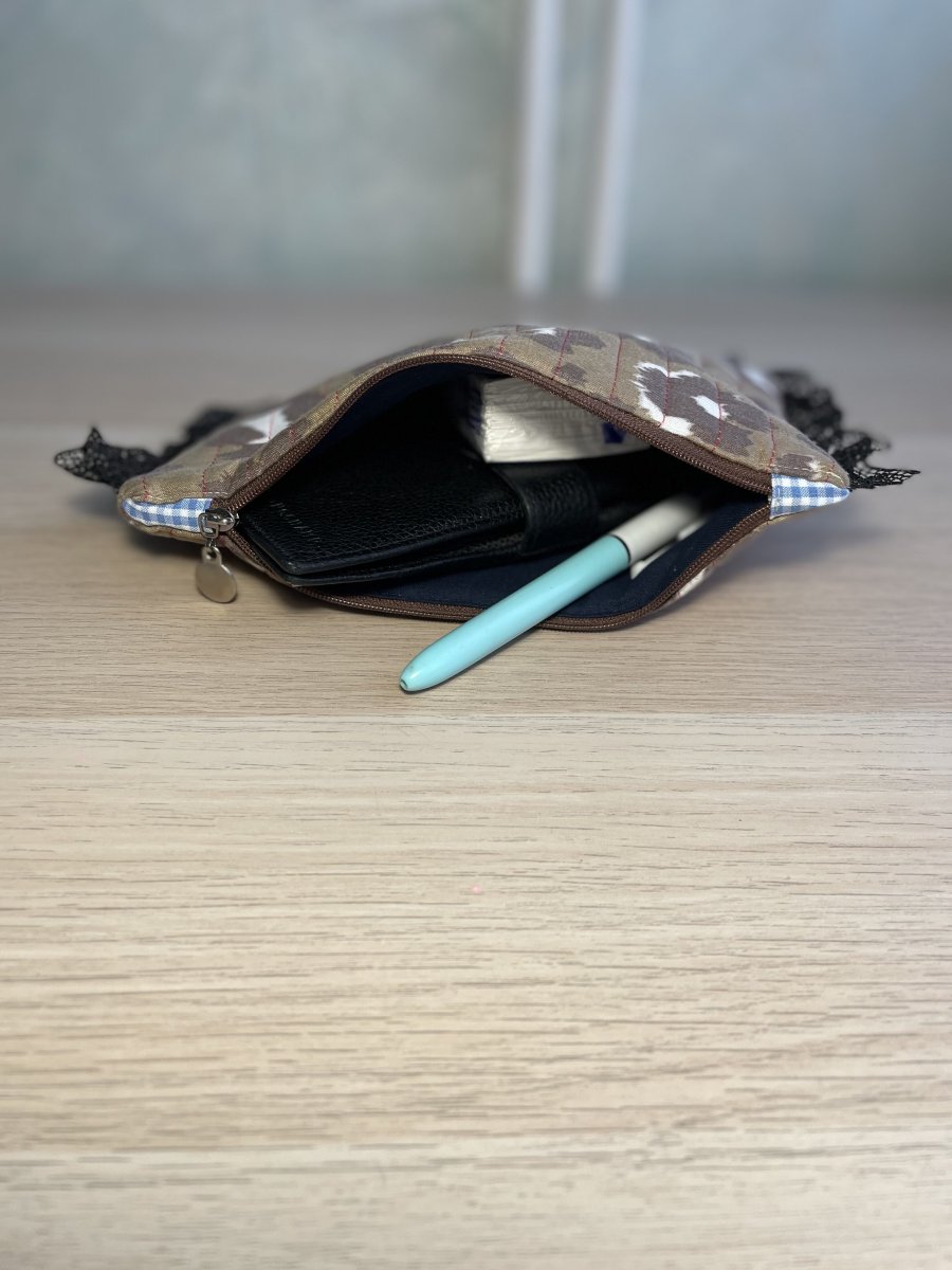 Dans le sac, cette pochette peut servir de trousse à maquillage pour les petites retouches tout au long de la journée, de trousse de secours/soin pour les petits bobos, ou de pochette pour vos documents importants (permis, ordonnance, ticket de caisse, argents).