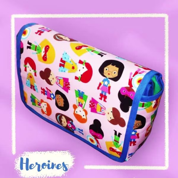 * MATELAS DE CHANGE (A NOUER) : 100% coton imprimé / Intérieur : capitonné 100% polyester pour plus de confort / Doublure : 100% coton vert/ Nouette : 100% biais de coton rose + bordure en biais 100% coton bleu roi