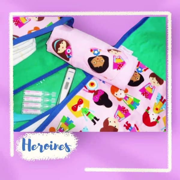 PARTICULARITE : Le lange-doudou, le doudou idéal pour les moments câlins, peut également servir de couverture fine ou de bavoir . Le matelas à langer est capitonné pour un meilleur confort pour bébé lors du change. Il s’enroule et se noue. Le sac comporte une poche zippée dans le rabat afin d’y stocker les petits accessoires de bébé tels que paire de ciseaux, thermomètre, pansements, pipettes de sérum physiologique, pipettes d’éosine aqueux, cotons, … Se glisse dans le panier de la poussette, dans le sac cabas de maman, dans la valise, … Le tout est lavable en machine à 40°.
