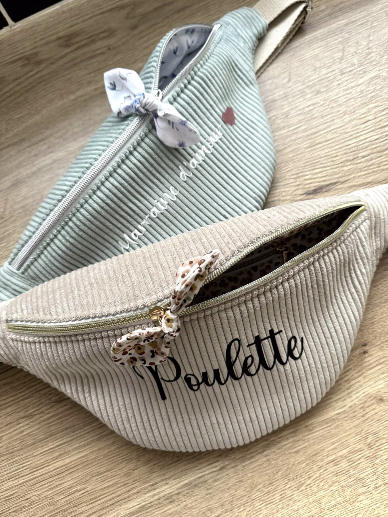 Les boucles et le zip sont soit en doré ou argenté, le choix de la couleur sera associé en fonction de l’harmonie avec vos tissus.