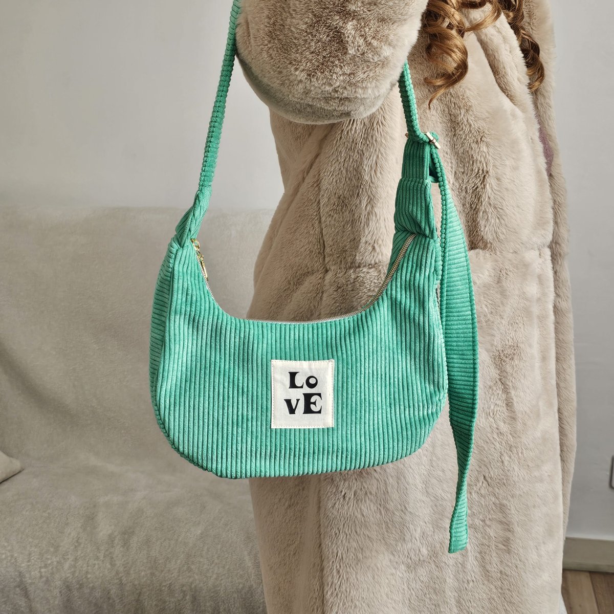Ajoutez une touche de couleur et d’élégance à votre tenue avec ce sac bandoulière en velours côtelé. Confectionné avec soin, il allie douceur, praticité et style.