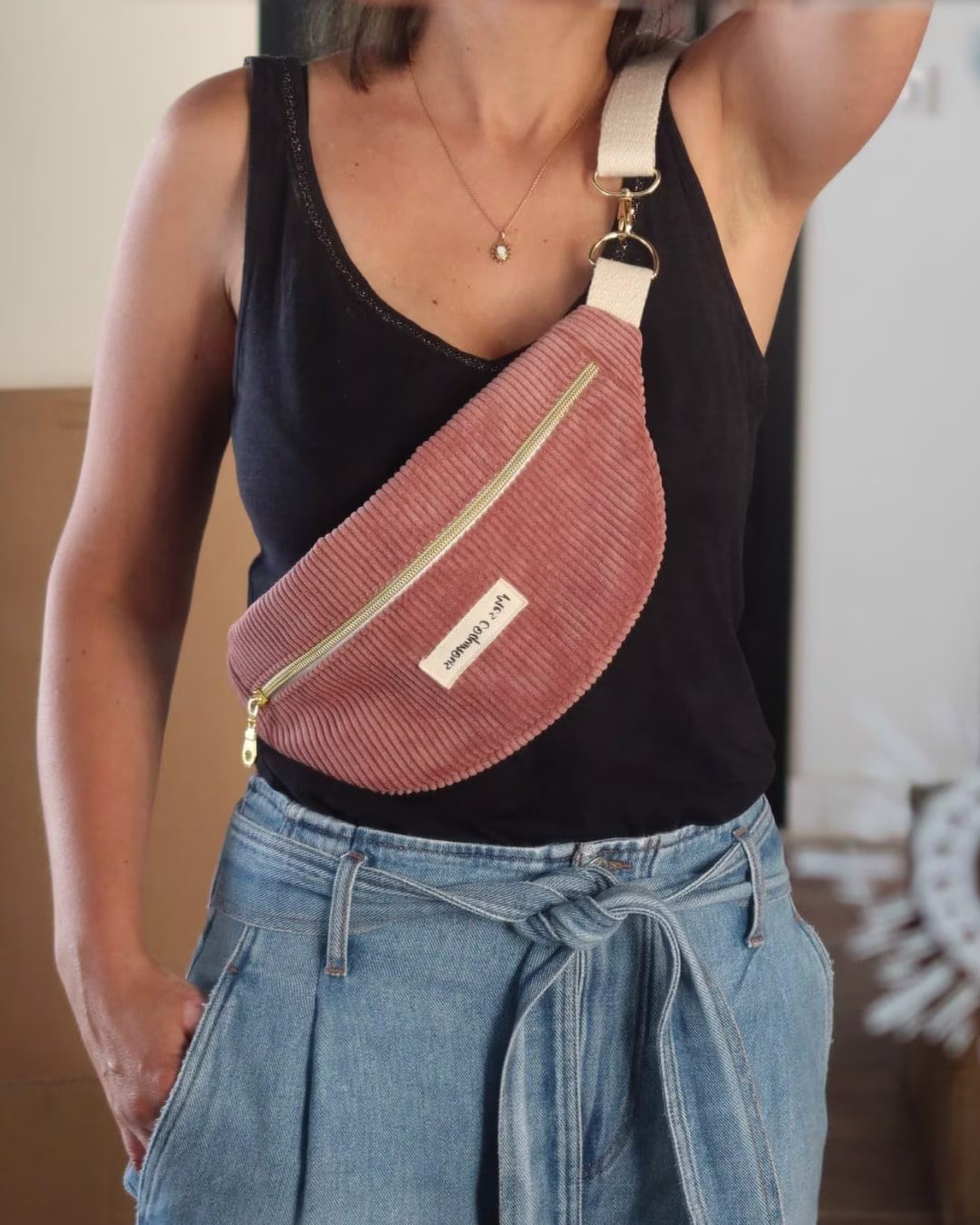 Soyez le premier à laisser votre avis sur “Sac banane en velours cotelé – kaki fait main”