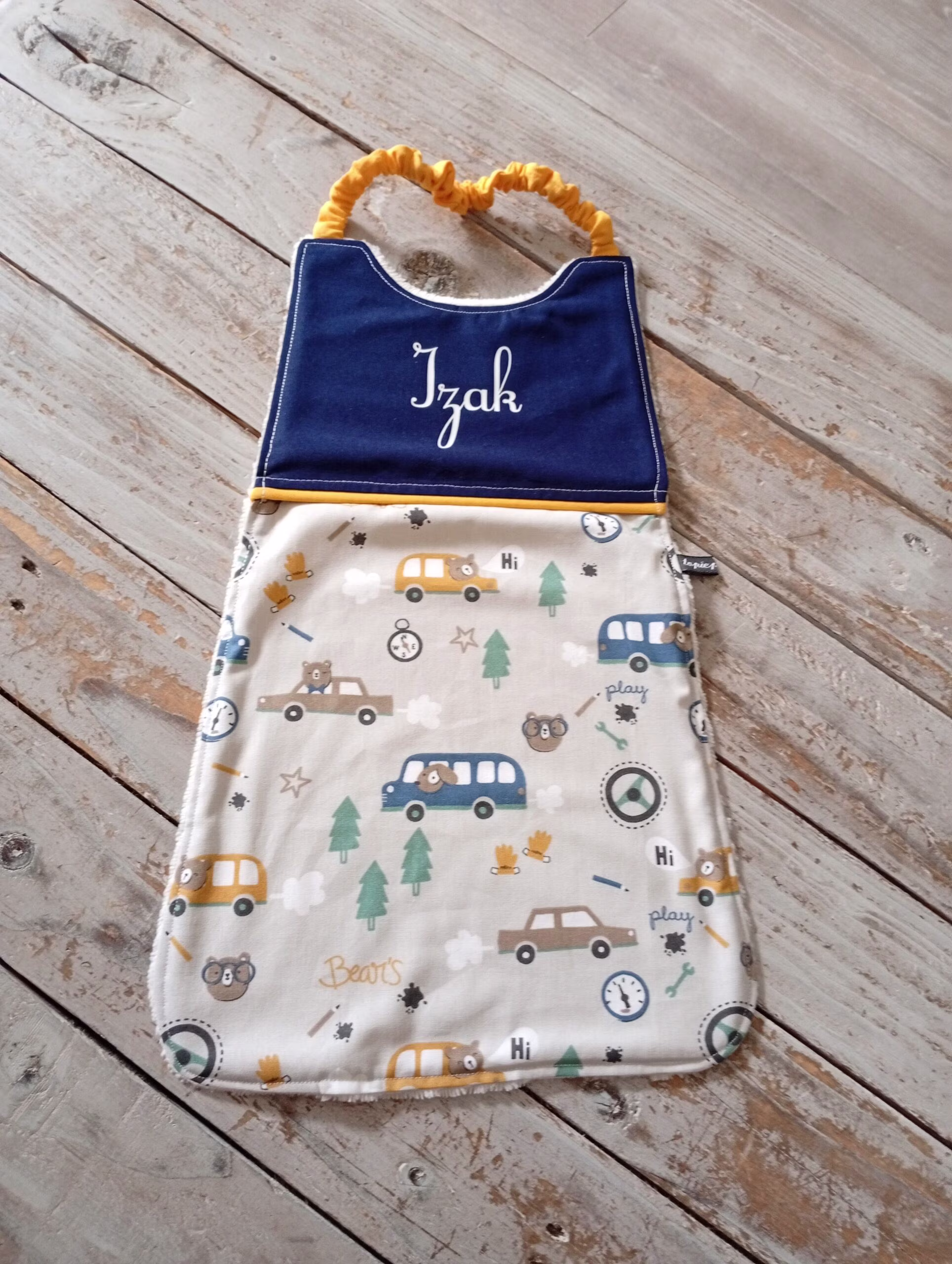 Pratique et jolie à la fois, cette serviette de table est idéale pour la rentrée en maternelle des tout petits, chez la nounou ou même lors des premiers repas a la maison.( à partir de 6 mois )
