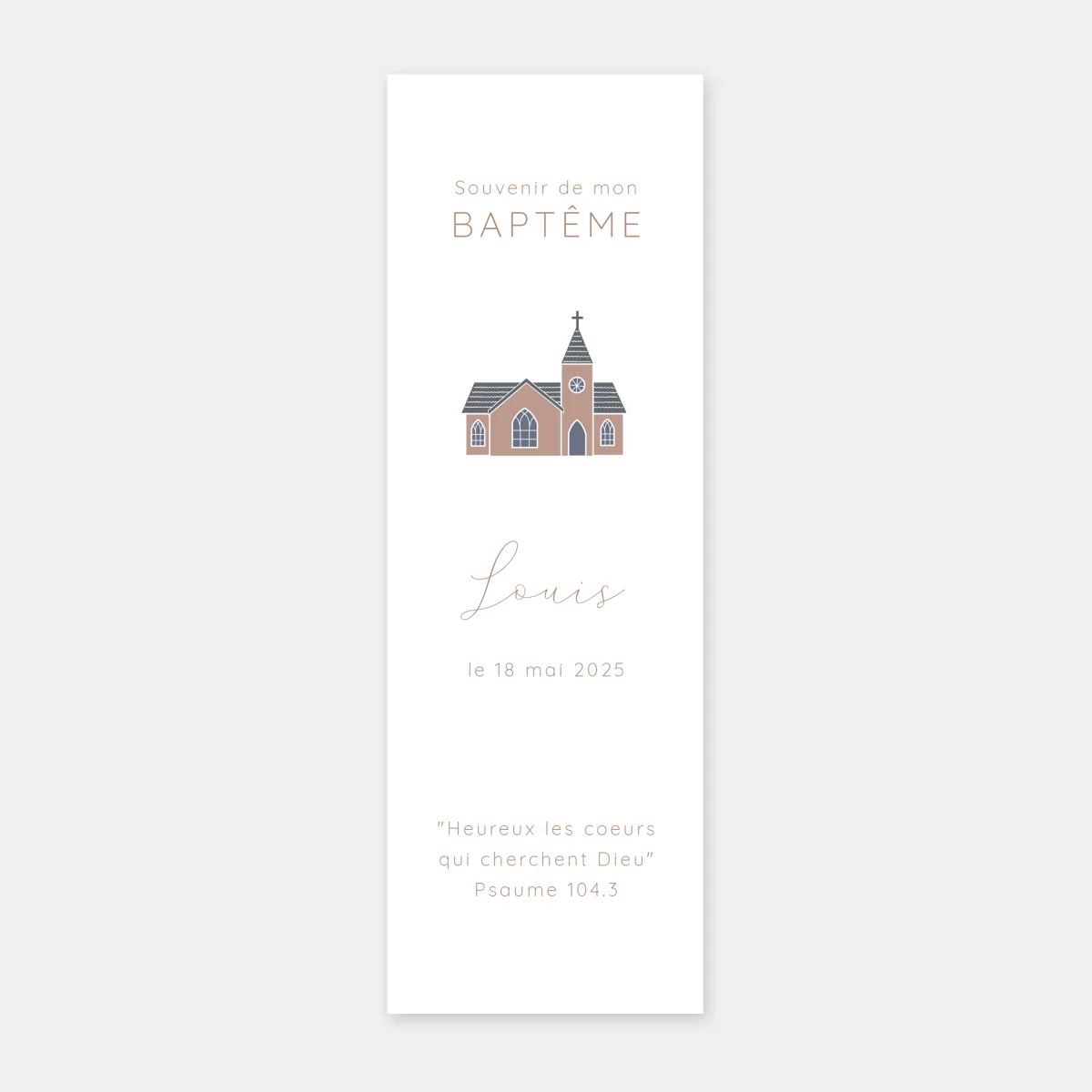 Notre signet de baptême ma belle église est un joli mélange d’une illustration représentant une église dessinée à la main et d’une mise moderne composée de deux belle typographies sur carte simple en format marque page.