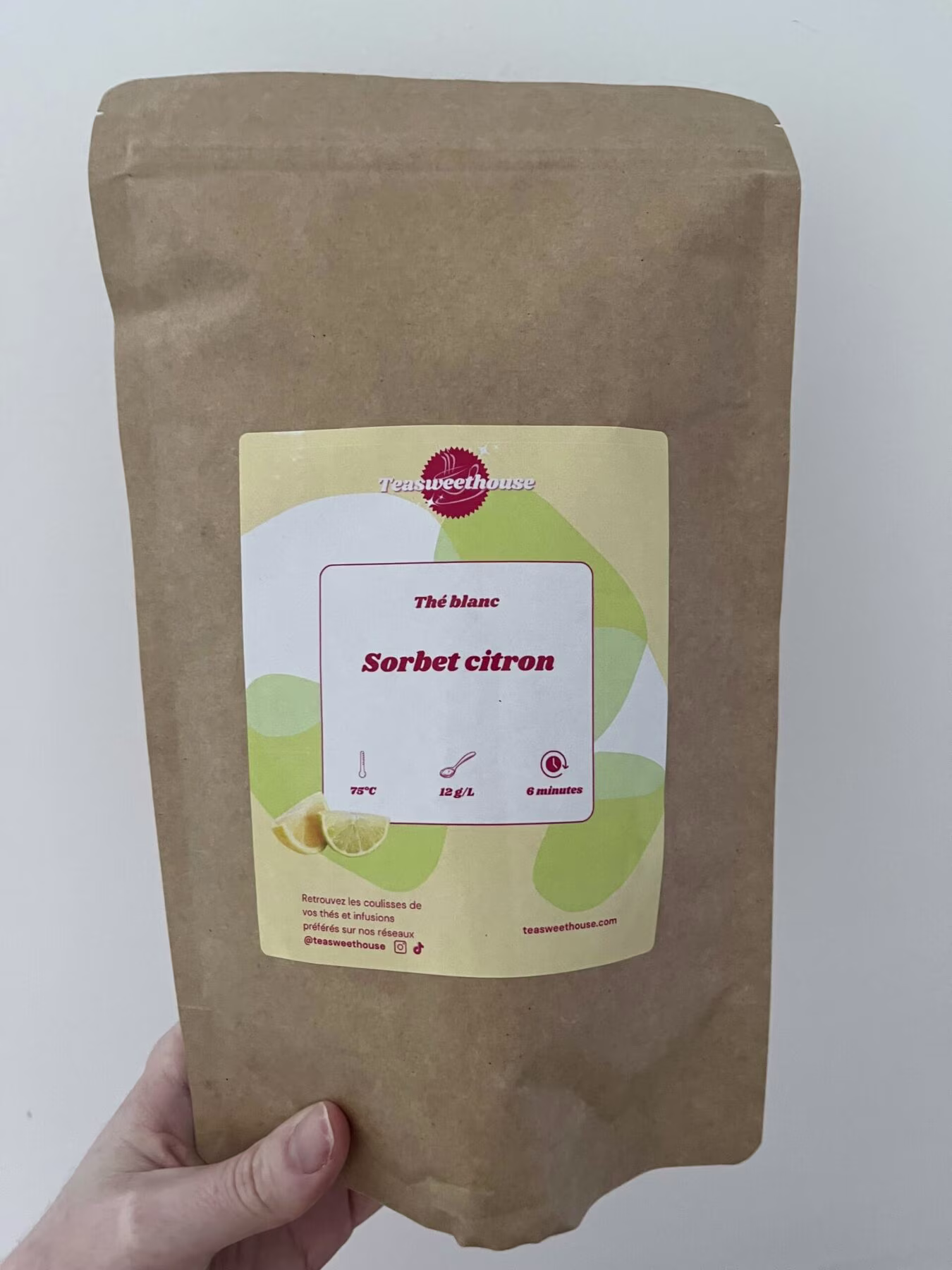 - Ingrédients : Thé blanc Pai Mu Tan 50%, thé vert Sencha, citronnelle, écorce de citron 4%, yaourt, souci, arôme.
