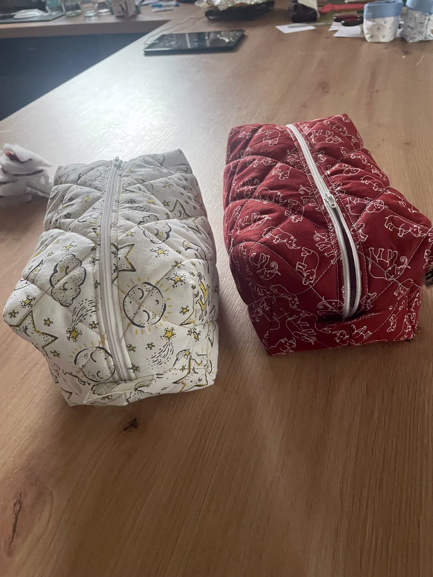 Trousse matelassée 22/12/12. Tissu bio, doublée. possibilité d’assortir au protège carnet de santé.