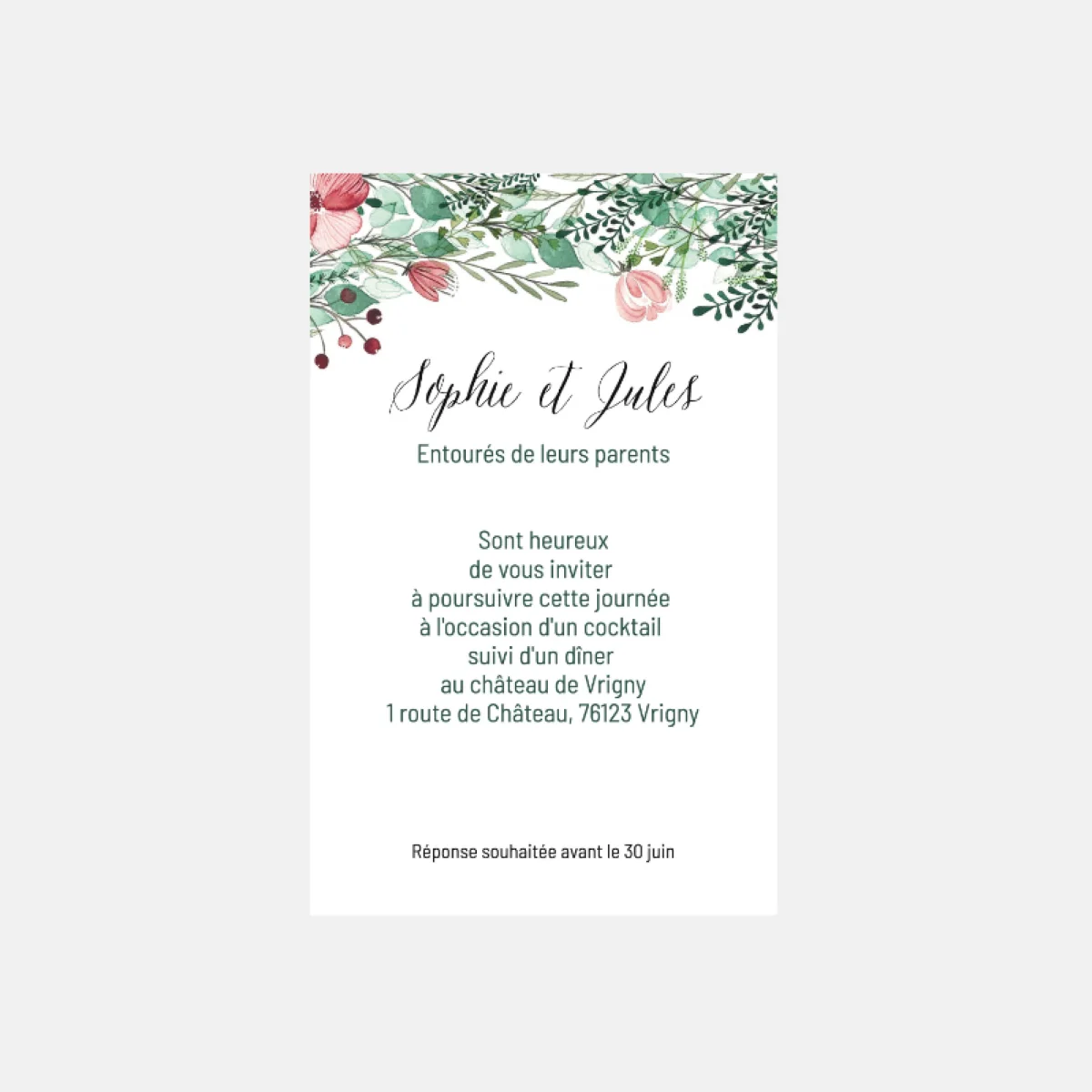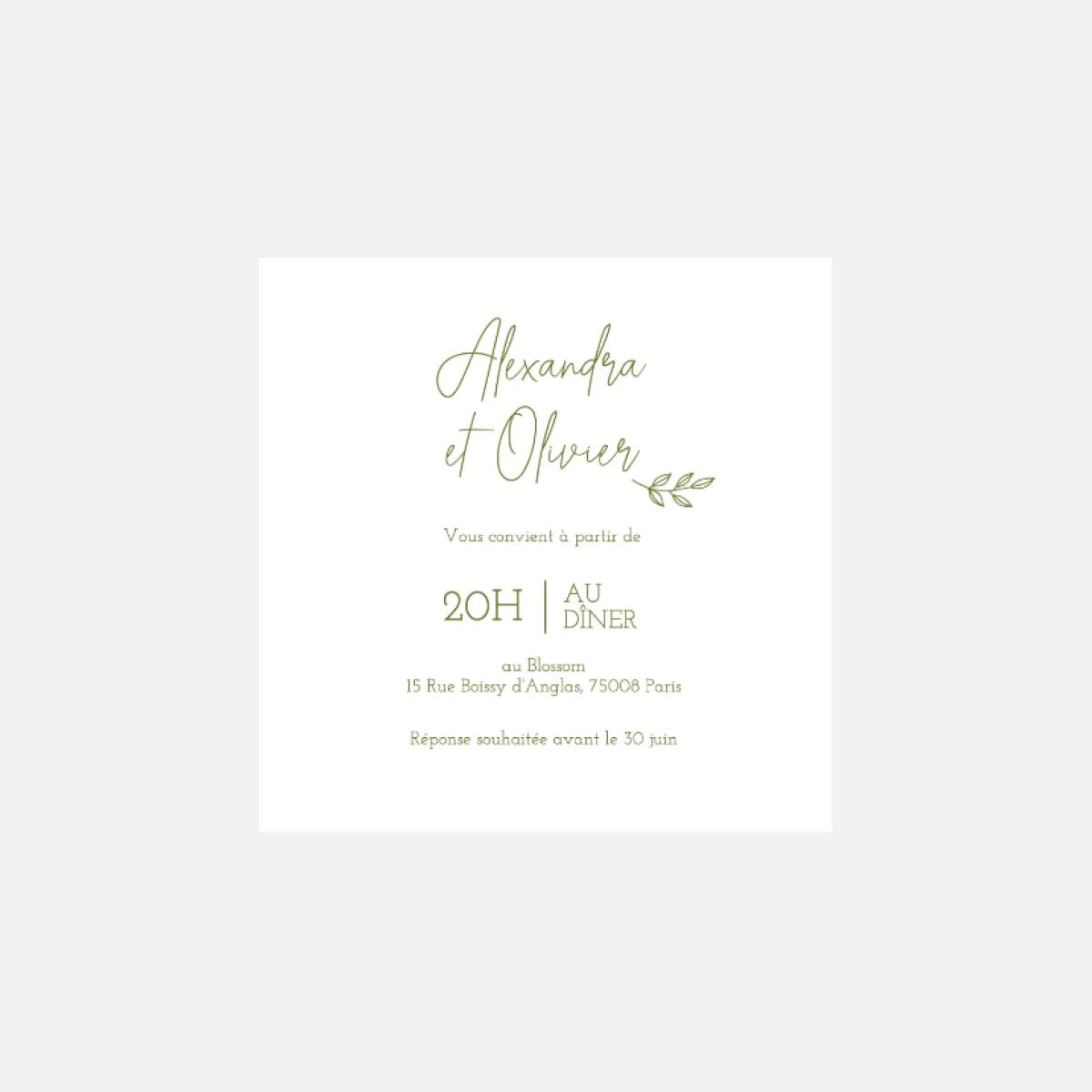 Carton invitation de mariage Classique Laurier