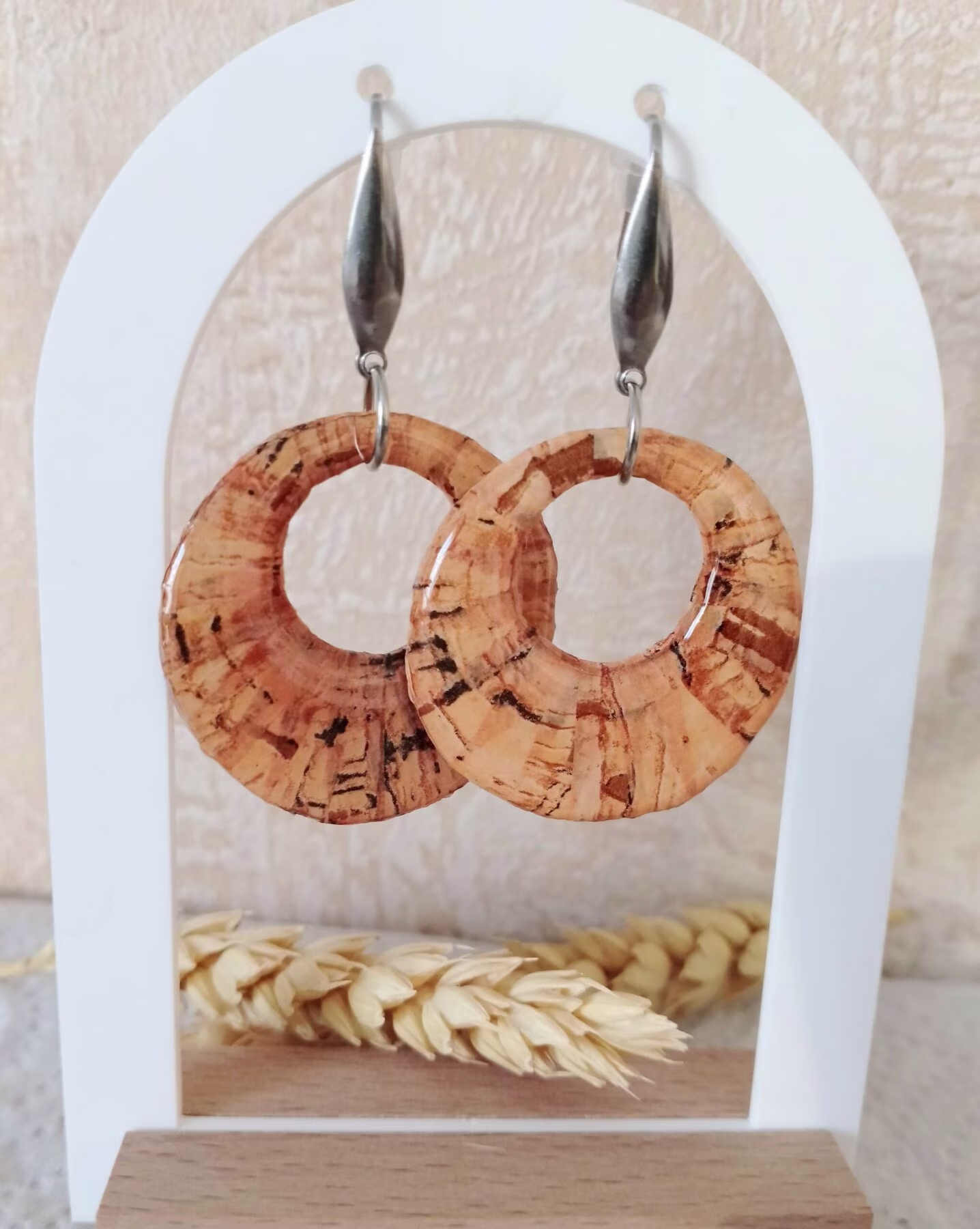 Boucles d’oreilles rondes papier imitation liège
