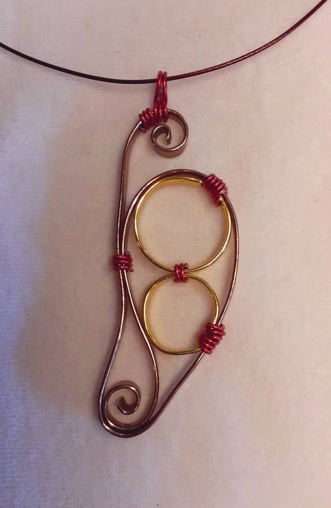 Pendentif rouge et noir en verre fusionné fait à la main avec collier