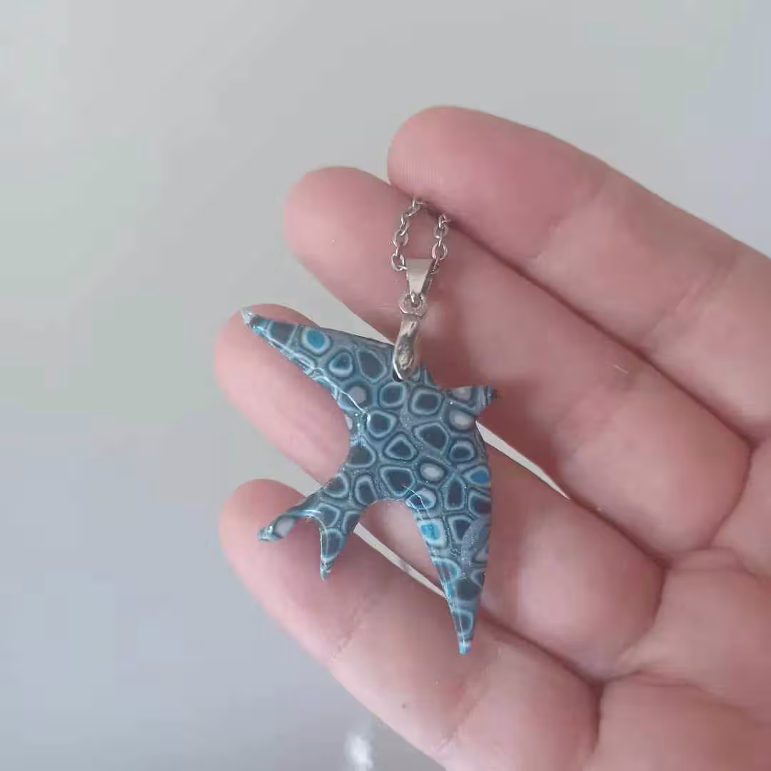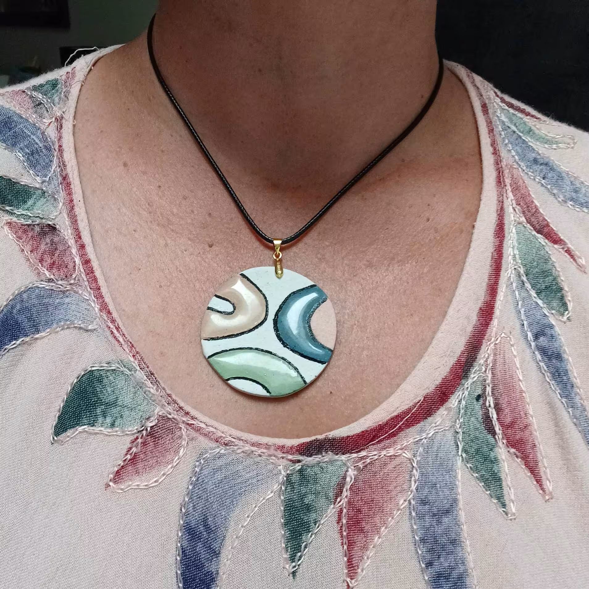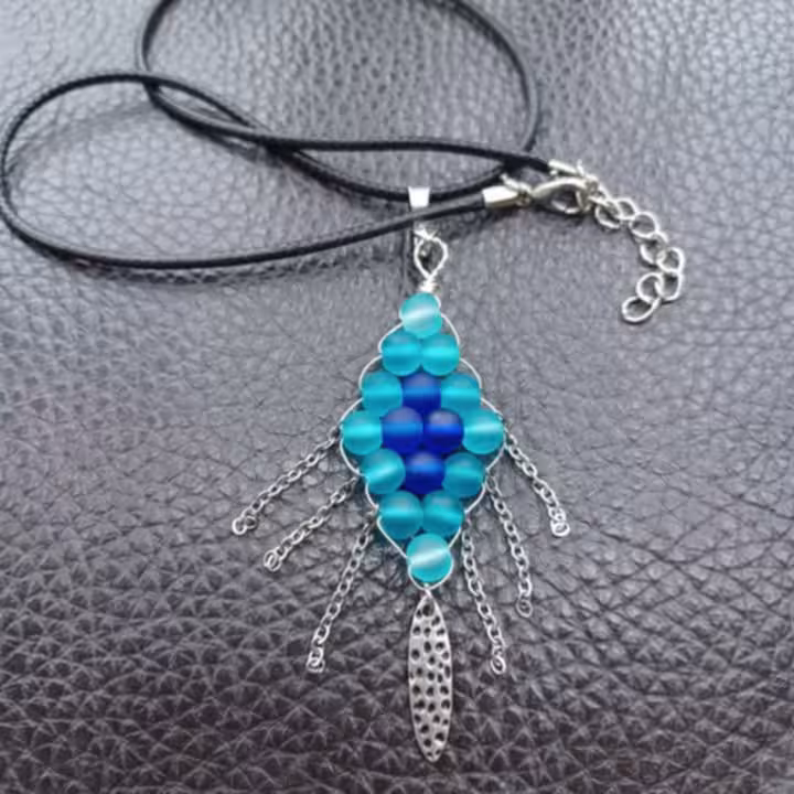 Pendentif bleu en verre fusionné fait à la main avec collier