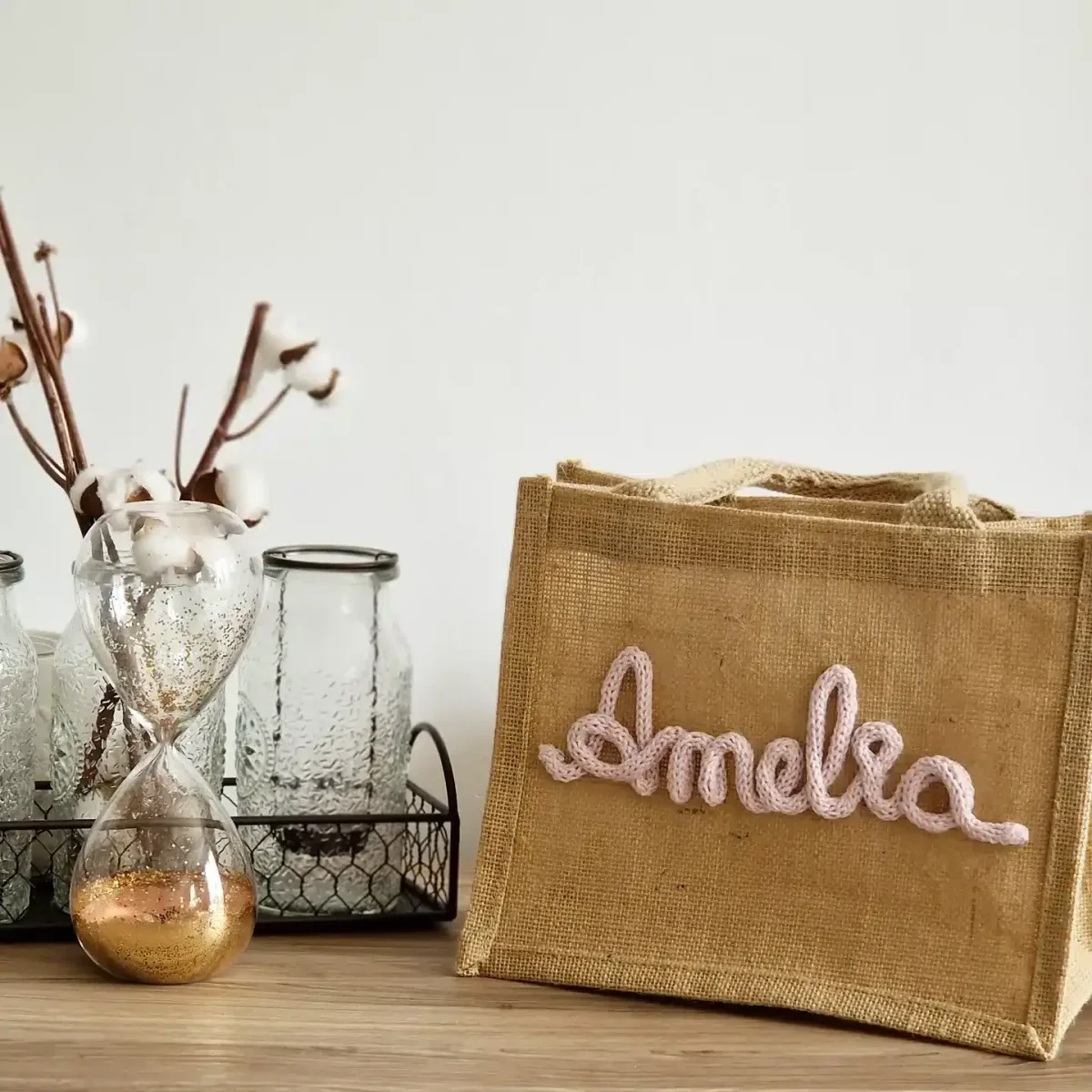 Petit sac en jute avec mot tricotin