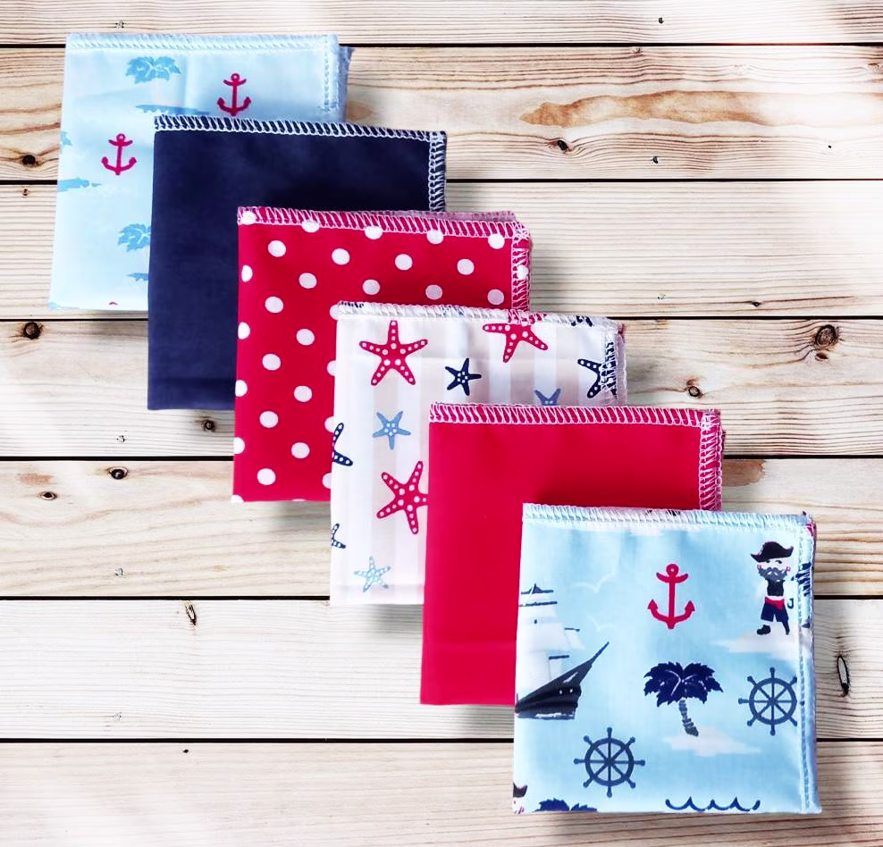 Lot 6 mouchoirs en coton lavables et réutilisables pour enfant PIRATES (20 x 20 cm) Mouchoir alternatif et durable – Hanckies