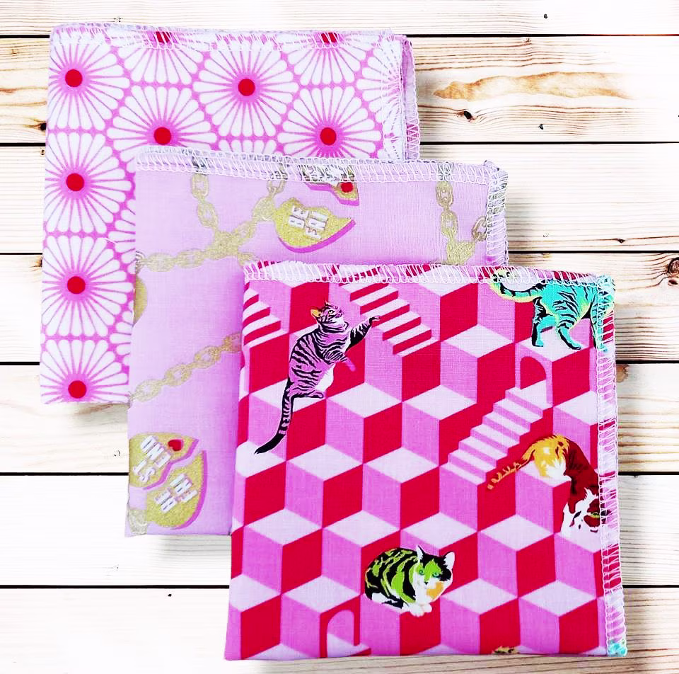 Lot 7 grands mouchoirs en coton lavables et réutilisables – ROSE-LIN (25 x 25 cm) mouchoir alternatif et durable – hanckies