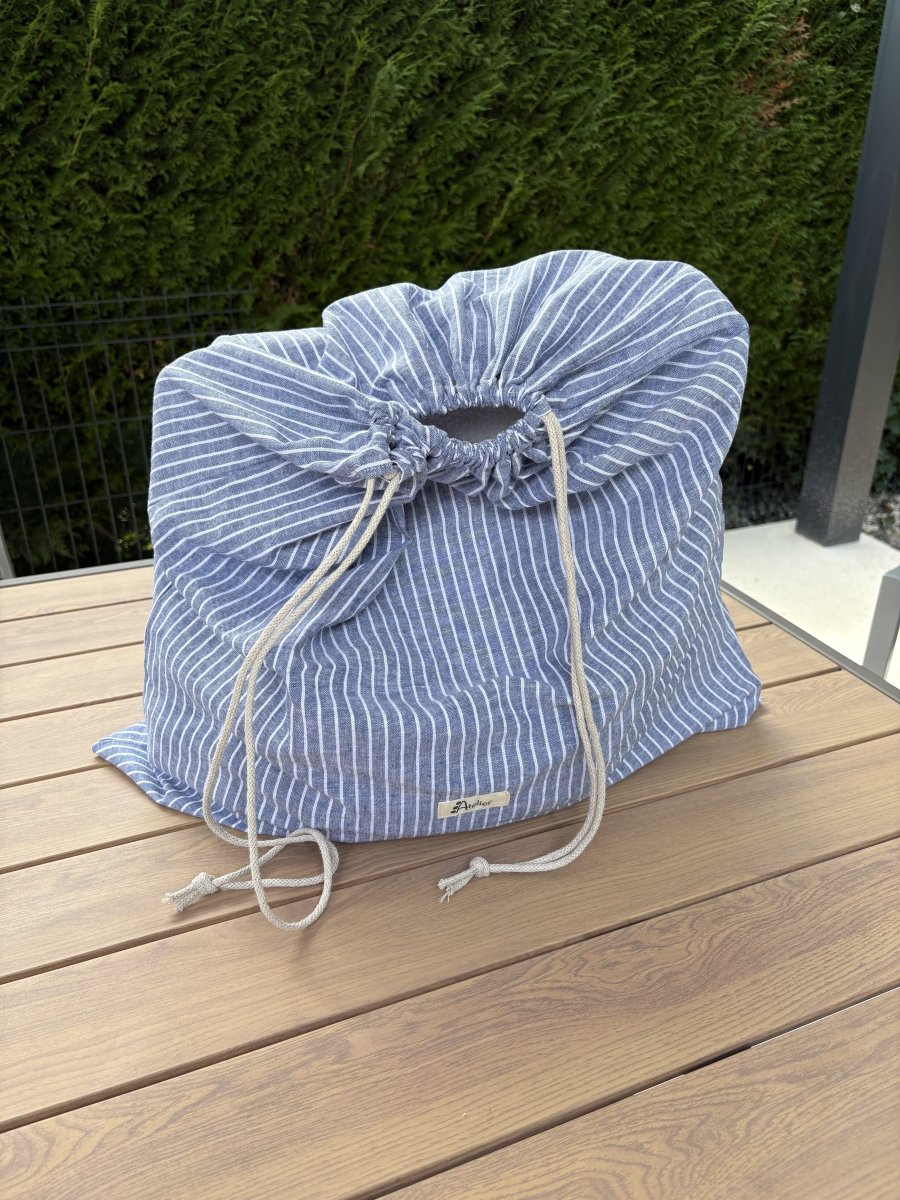 Sac à linge ou à sous vêtements en lin à rayures bleu clair