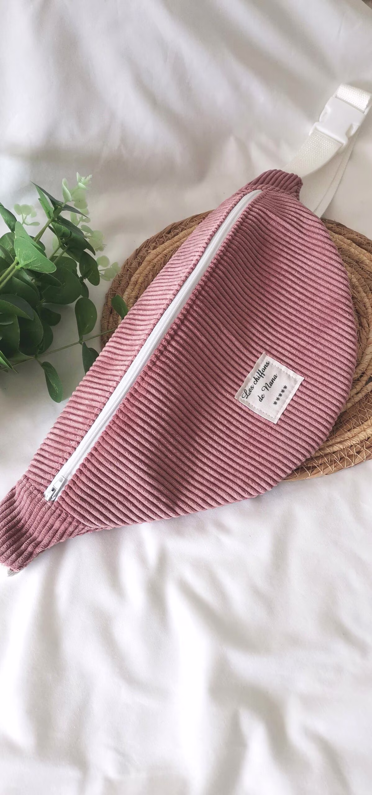 Sac banane velours côtelé vieux rose, doublure fantaisie