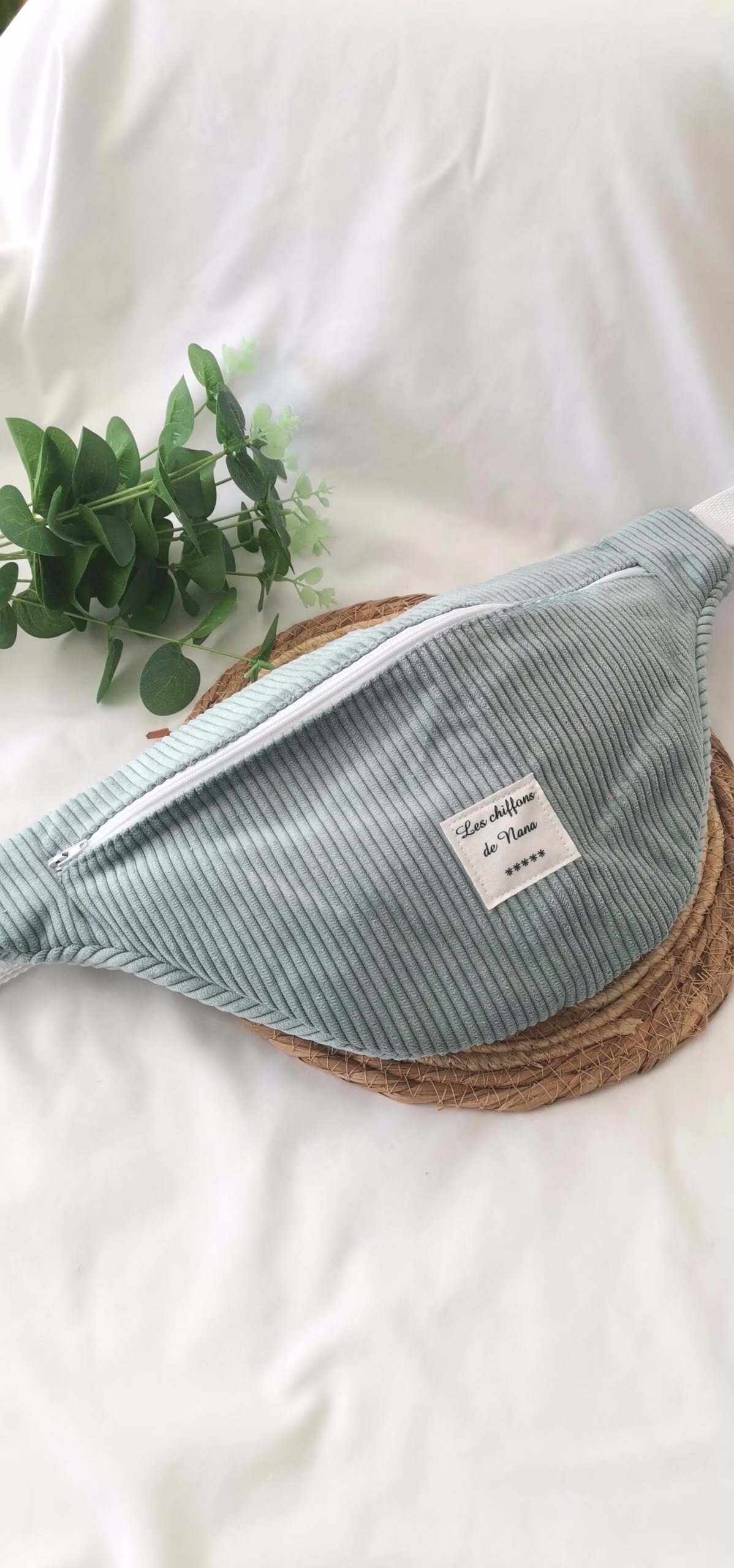 Sac banane velours côtelé vert céladon, sac banane avec sangle réglable