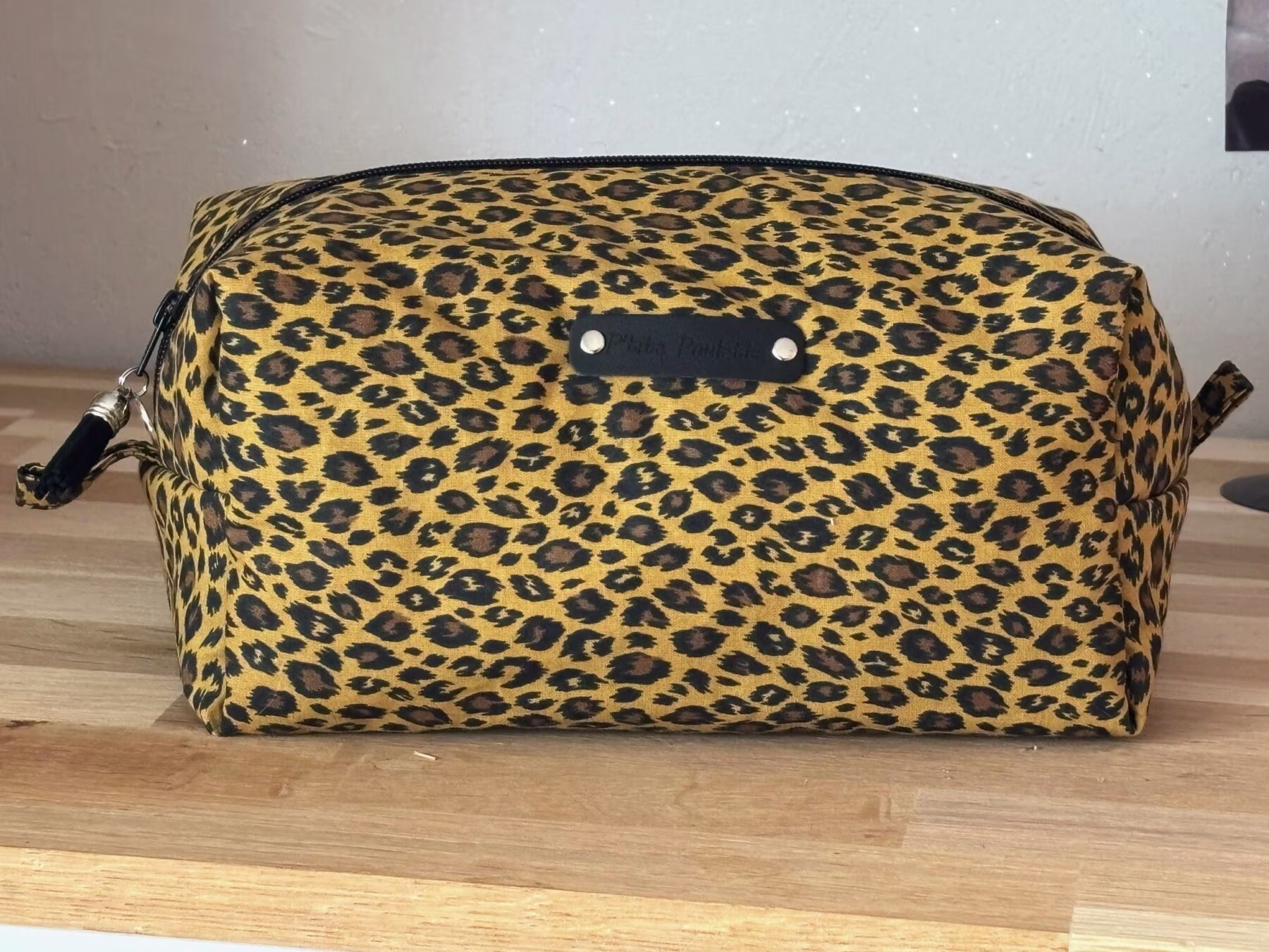 Maxi Trousse de Toilette “P’tite Poulette” – Léopard- Création artisanale Française